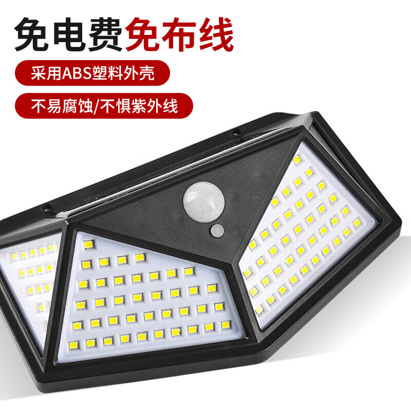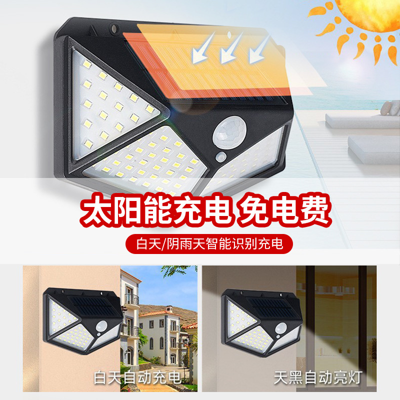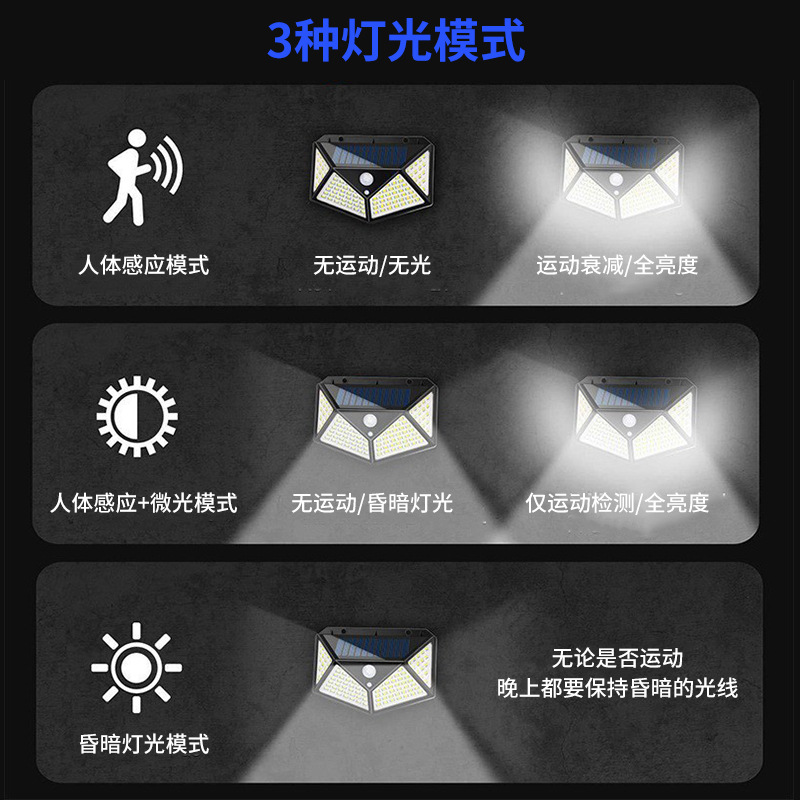 适用环境四面100LED壁灯太阳能灯人体感应景观庭院路灯户外灯围墙照明路灯