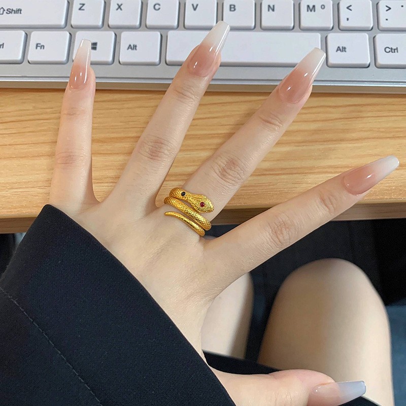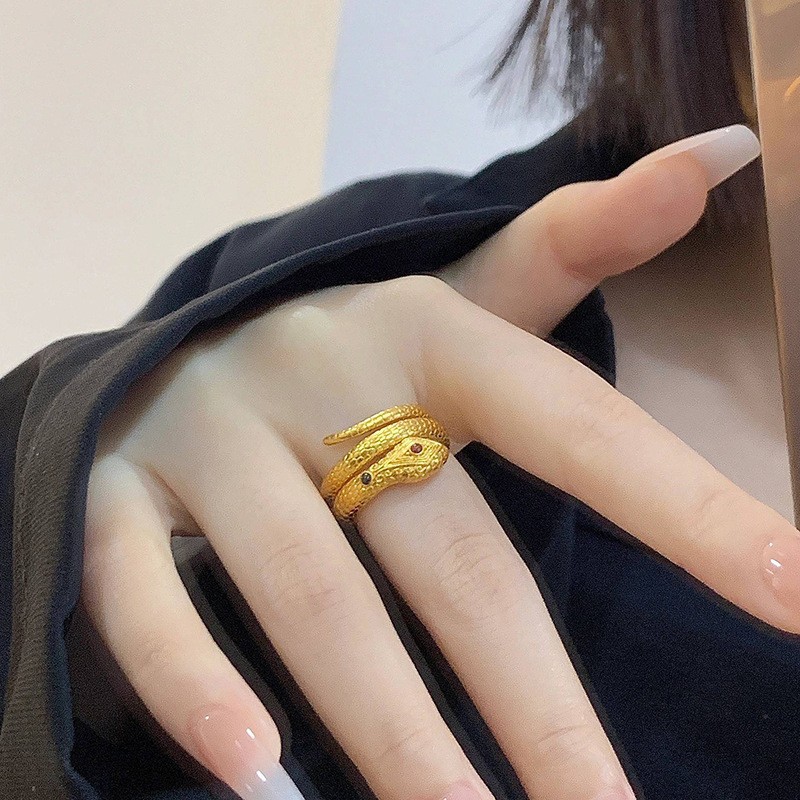 抖音爆款暴富小灵蛇戒指女2025新款古法重工缠绕蛇形戒一件代发
