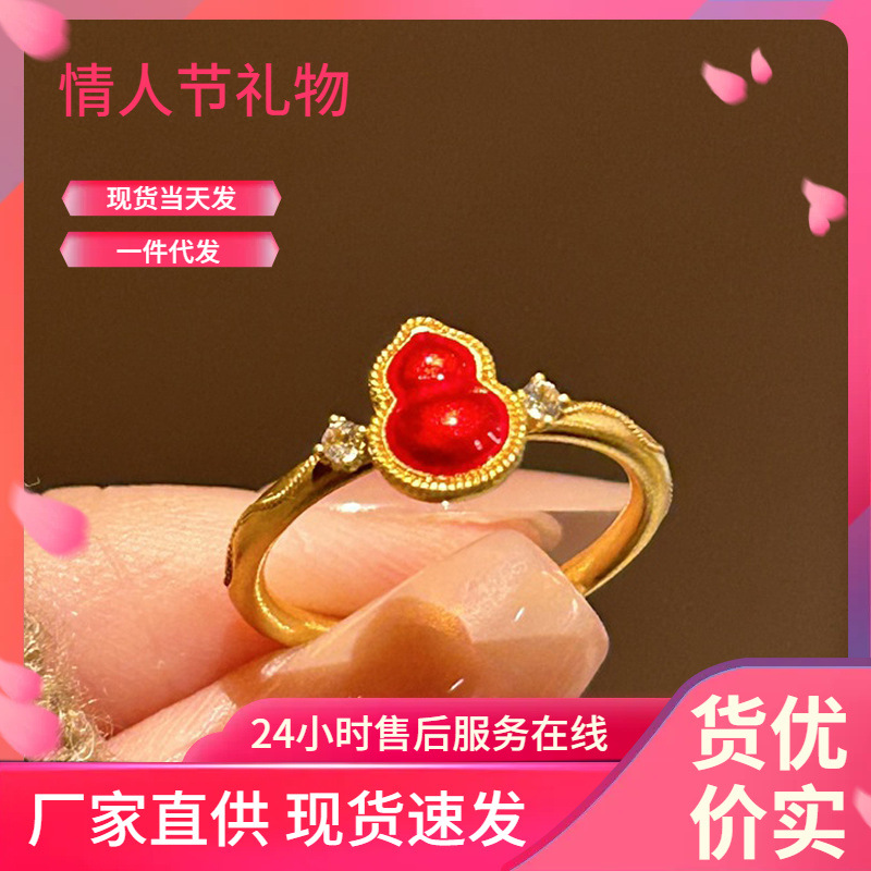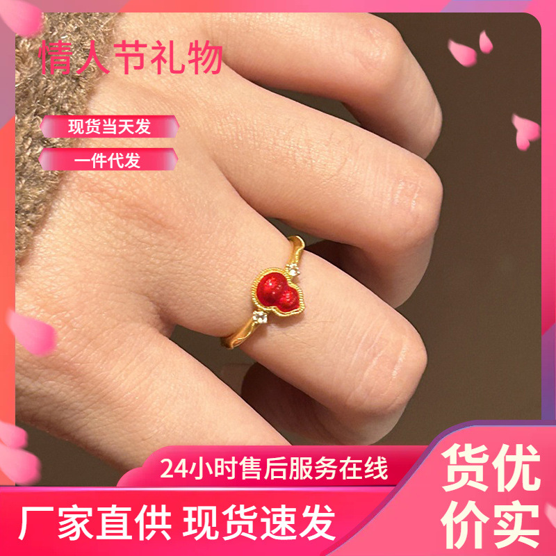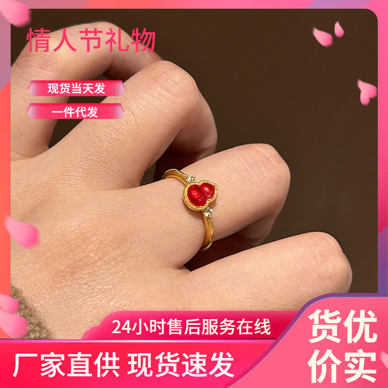 抖音爆款本命年红色葫芦戒指女古法精致小巧点钻小葫芦福禄指环