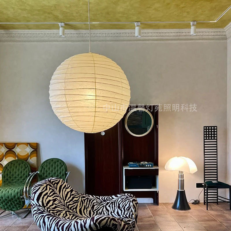 创意灯异形日式侘寂风野口勇吊灯宣纸灯圆球灯笼中古复古茶室客厅