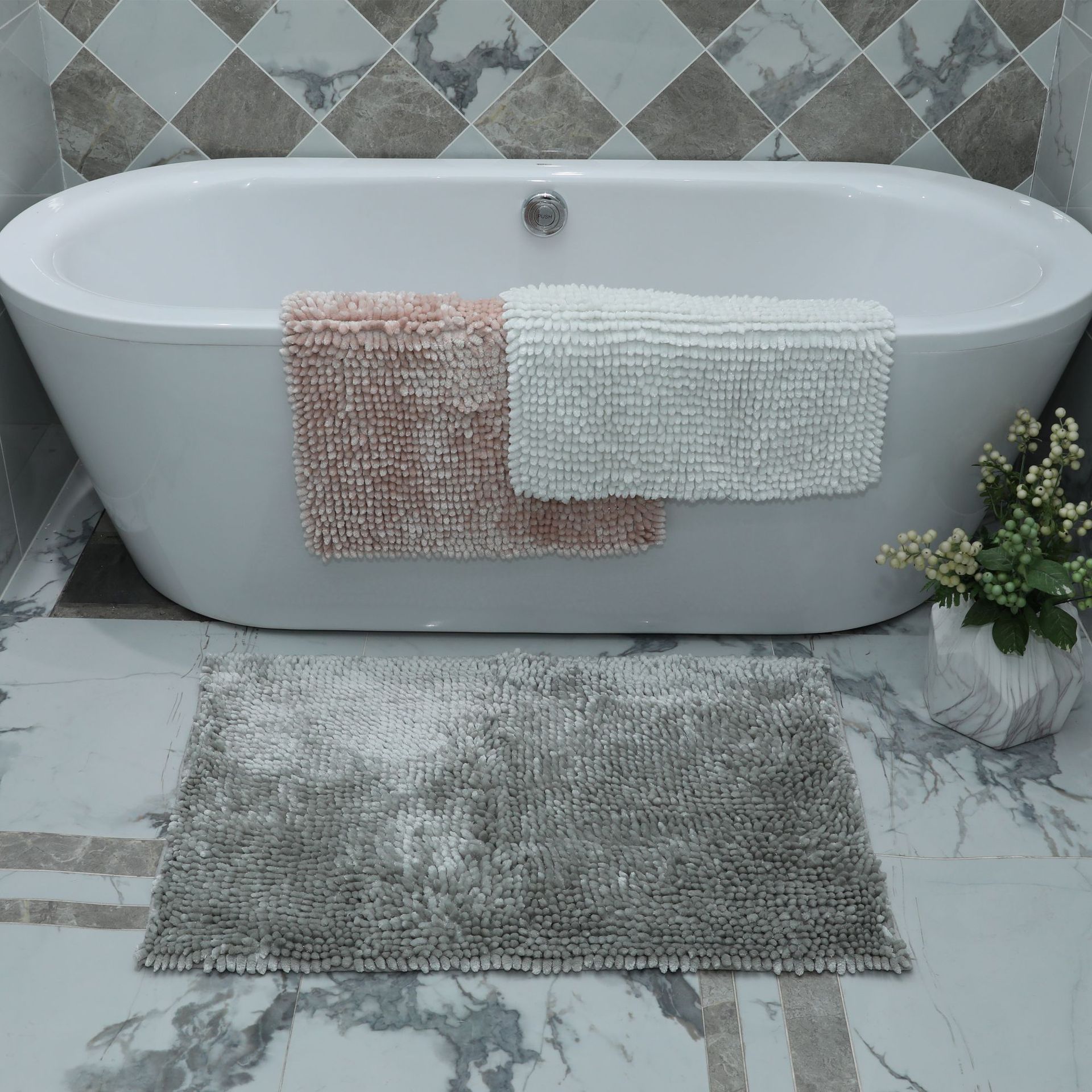 跨境批发蓝珊瑚粗细毛地垫客厅茶几卫生间吸水垫纯色防滑家用脚垫