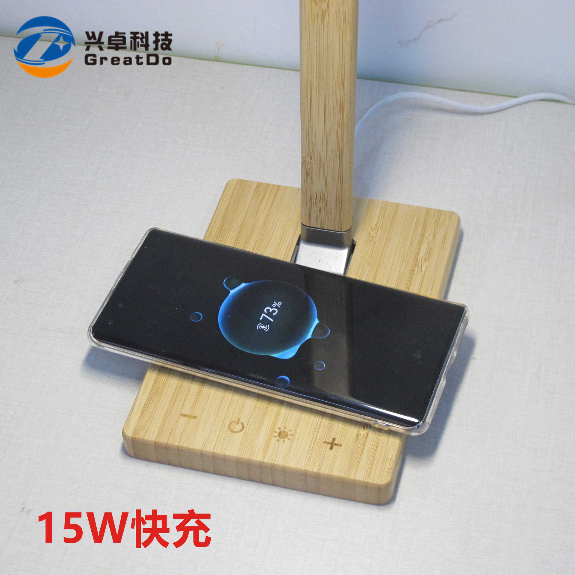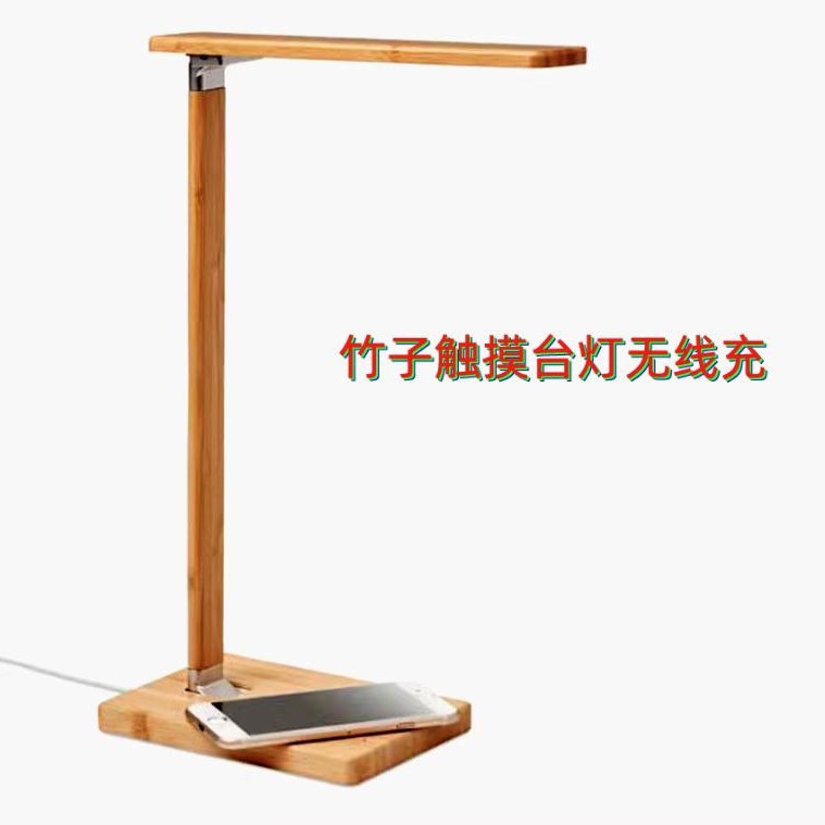 跨境爆款竹木材质竹子15W快充手机无线充功能台灯带触摸按键