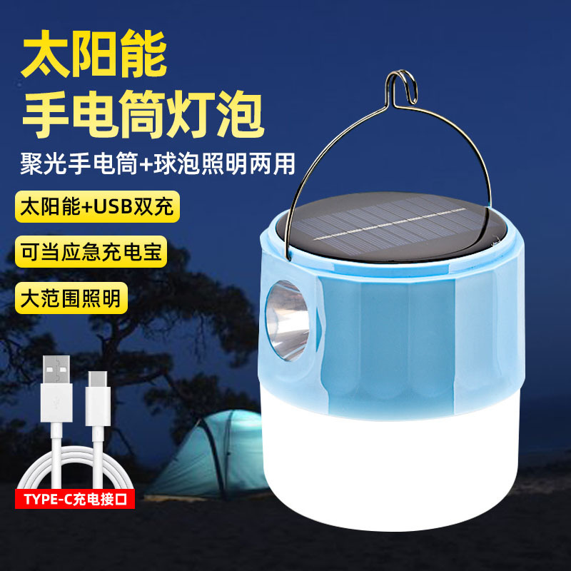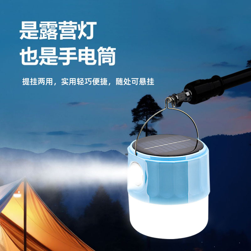 LED太阳能充电手提灯户外露营球泡灯夜市摆摊家用应急停电手电筒