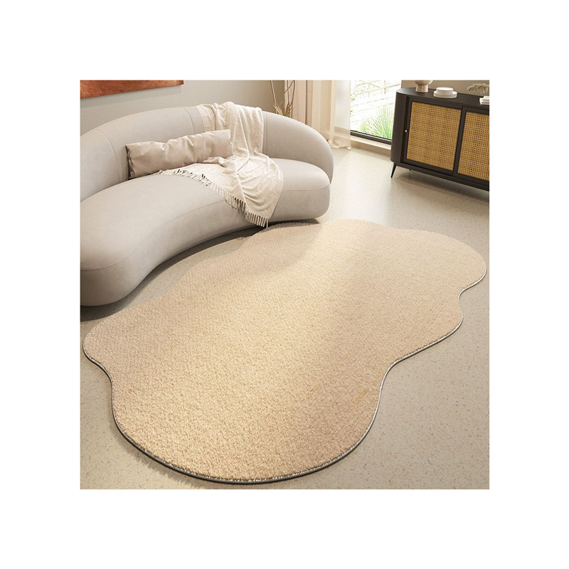 奶油风客厅地毯家用不规则沙发毯厂家供应可水洗易打理仿羊绒地毯