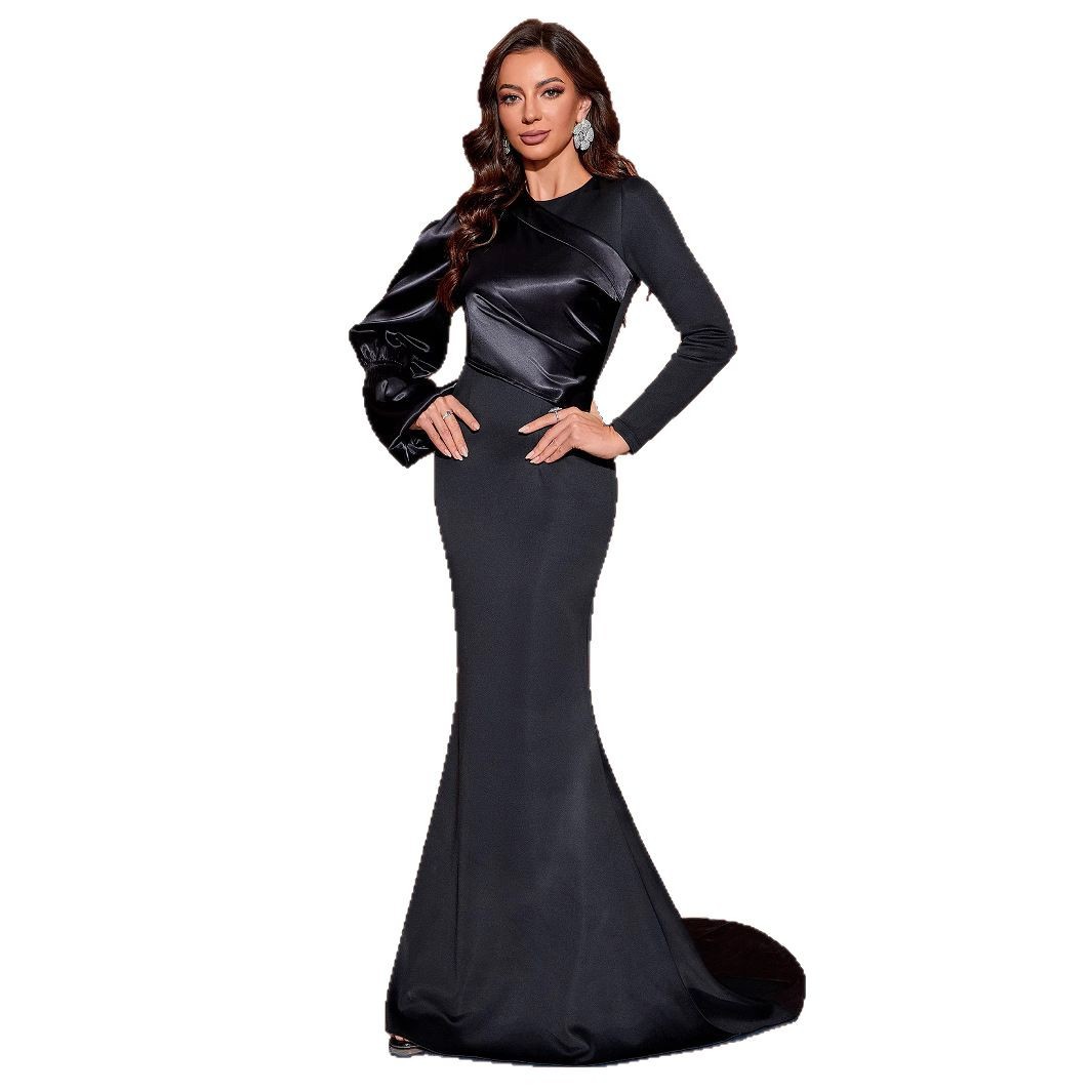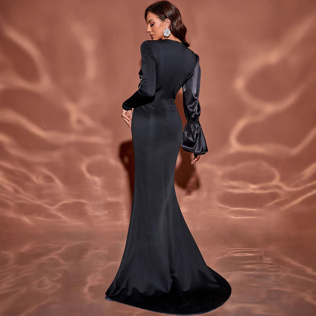 2025年春季跨境外贸新款黑色长袖礼服聚会派对礼服长款