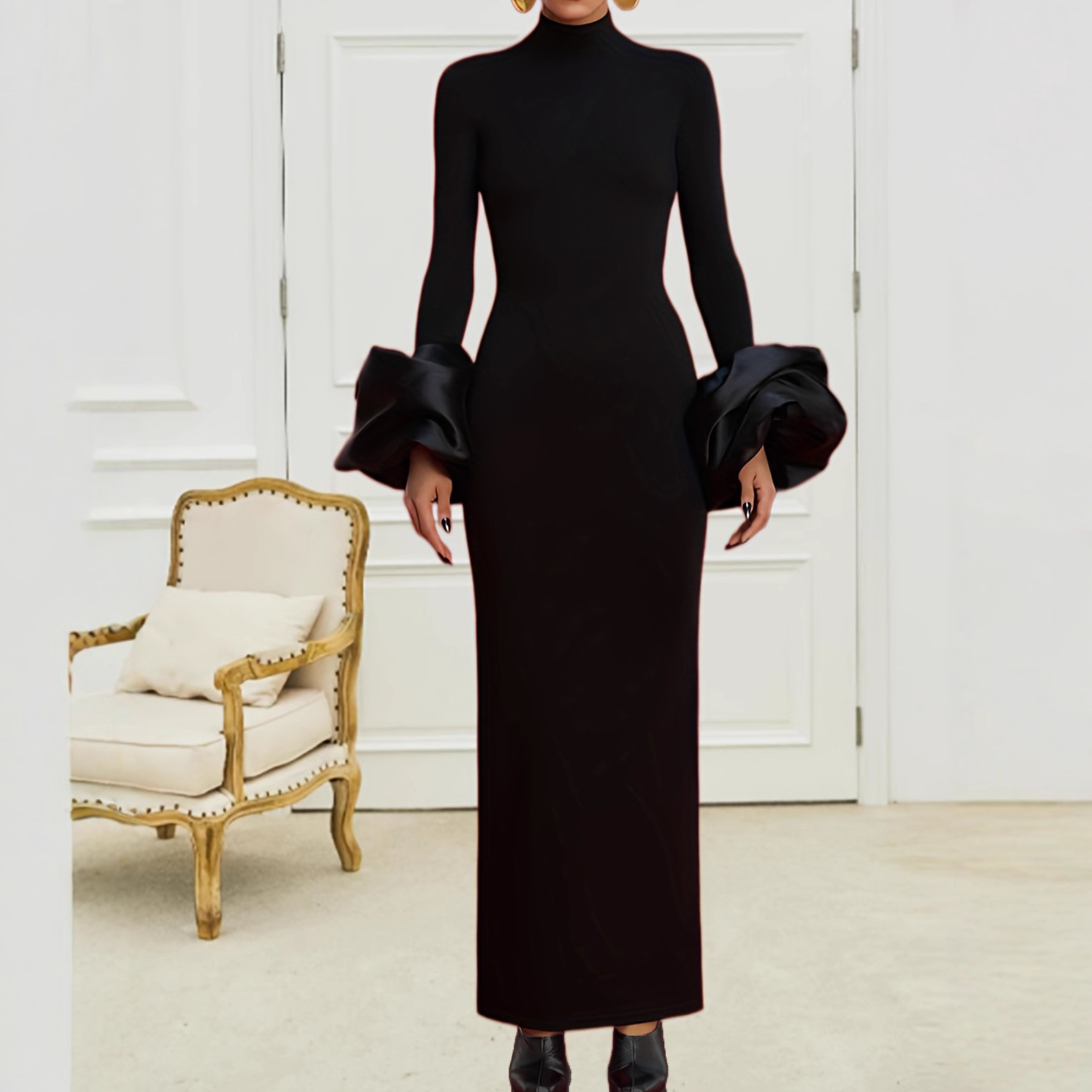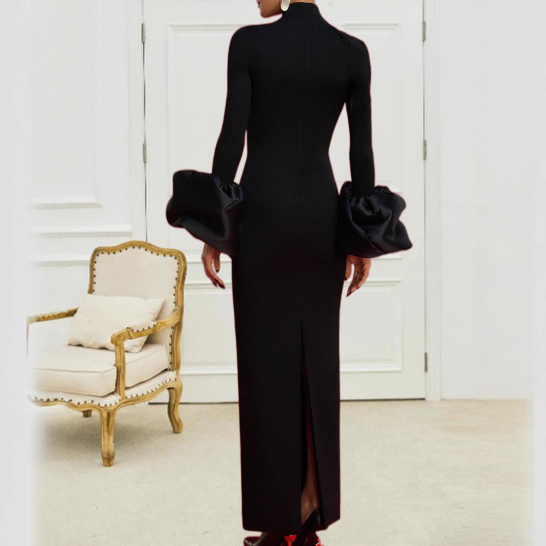 2025年秋冬黑色立领长袖礼服派对亚马逊速卖通外贸批发立领礼服