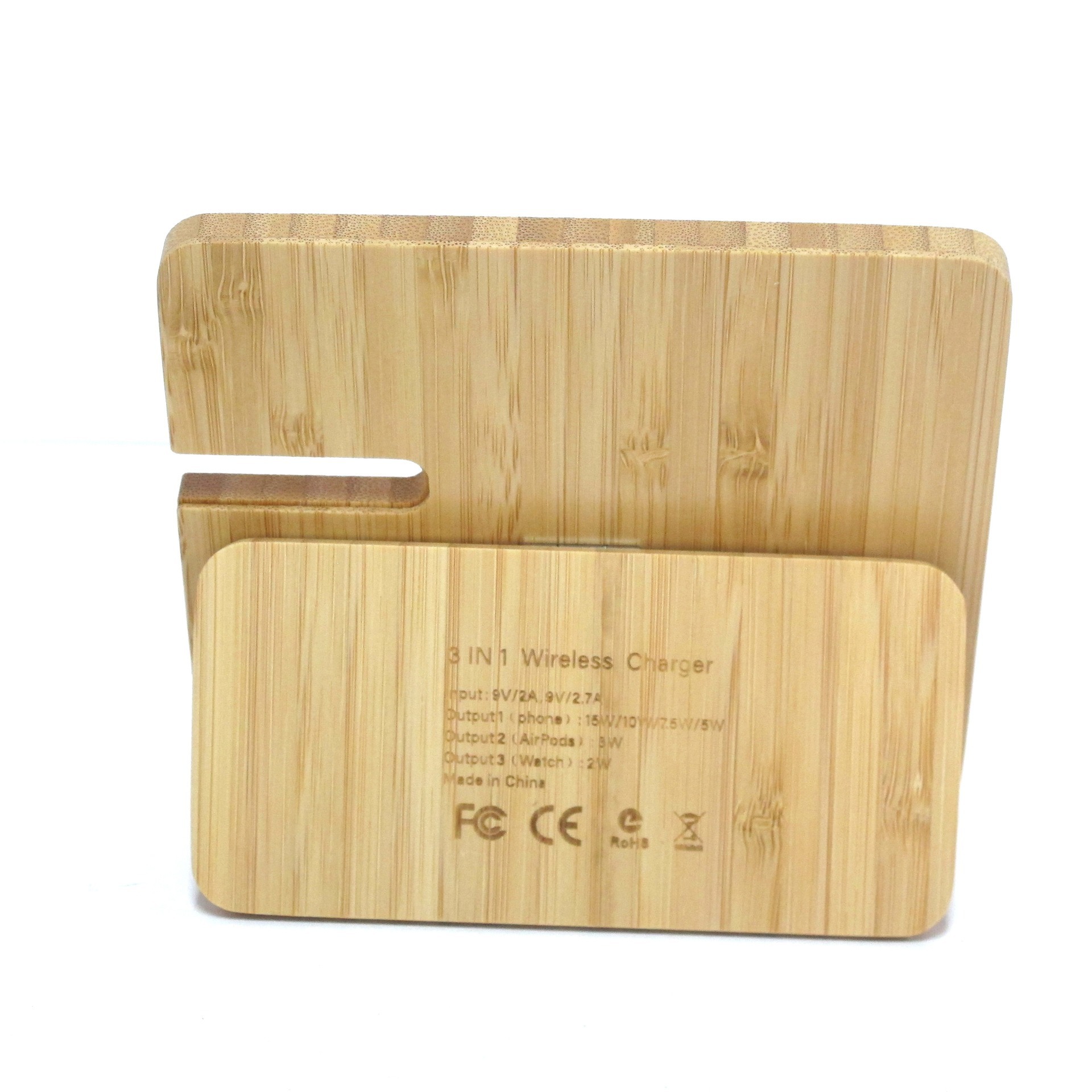 | 三合一无线充手机支架 | 多功能三合一无线充手机支架 | 多功能木质竹子无线充 | 15W木质竹子手机无线充支架 新款礼品竹木无线充定制 |