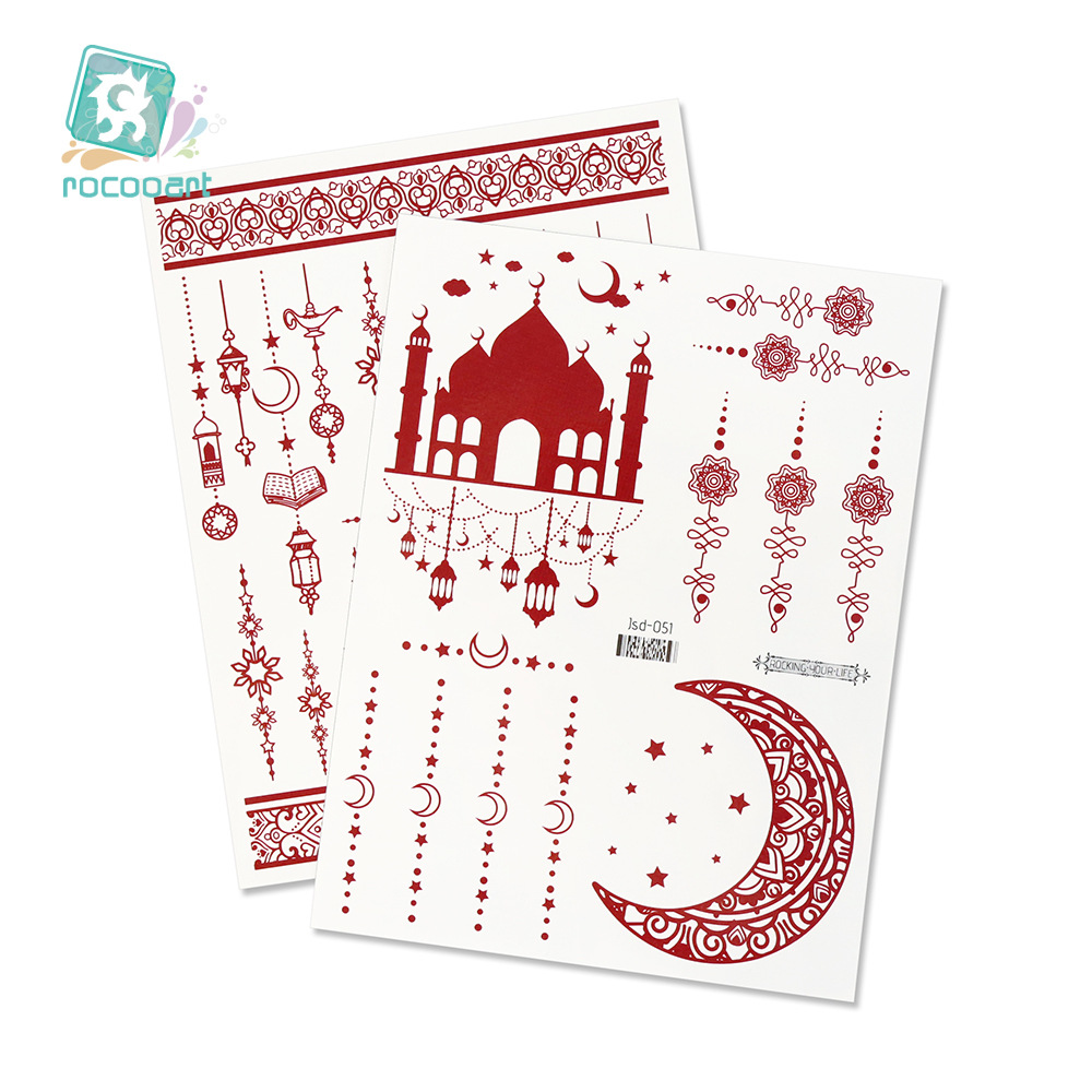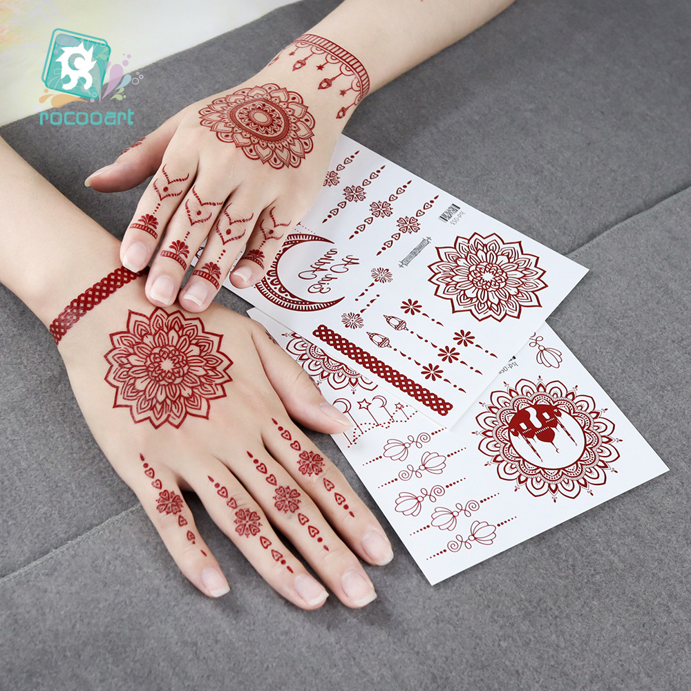 瑞卡龙新款跨境海娜纹身贴棕红色蕾丝手背印度防水纹身贴纸