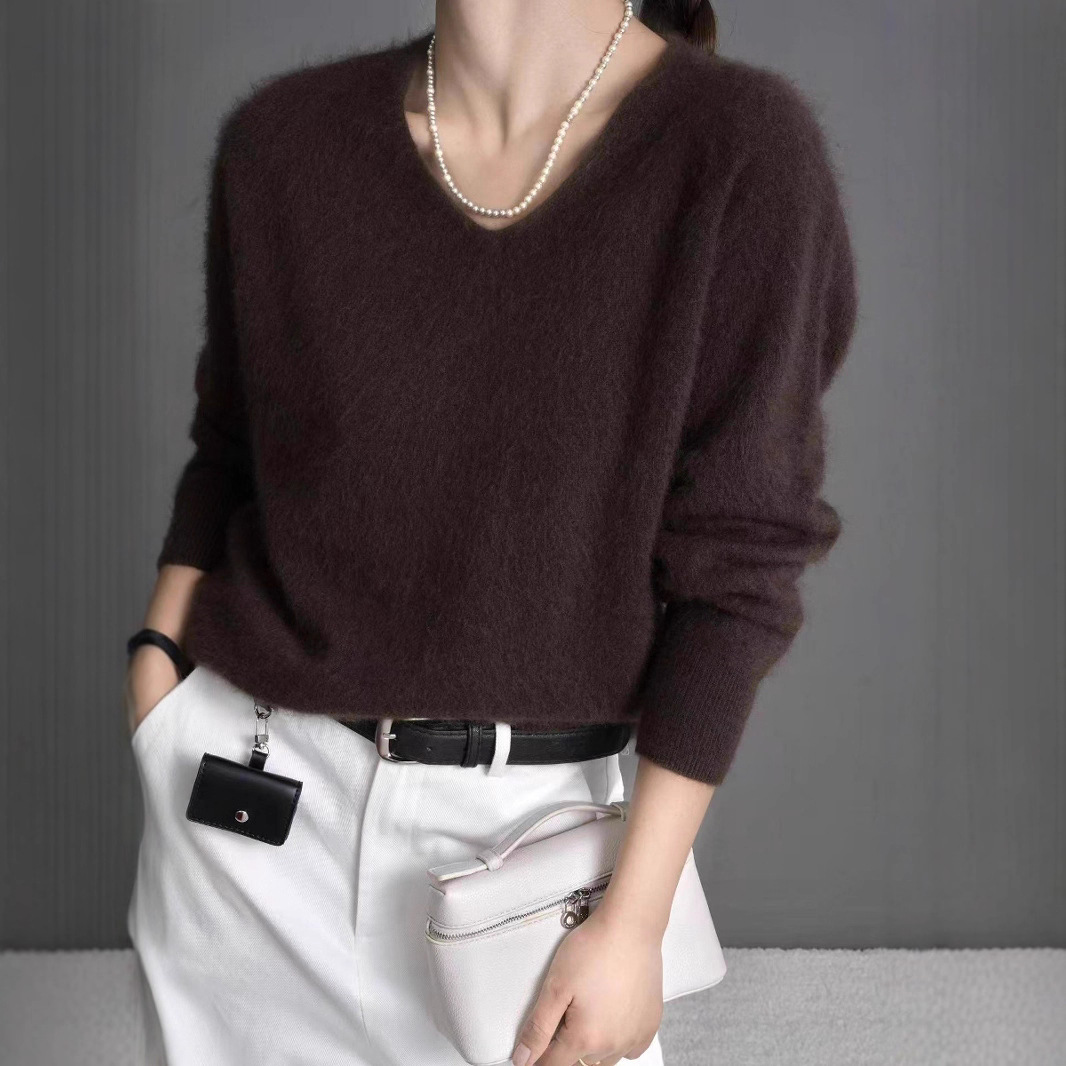 秋冬羊绒羊毛V领拉绒拉毛羊毛衫针织套头衫毛衣厂家接受大小订单