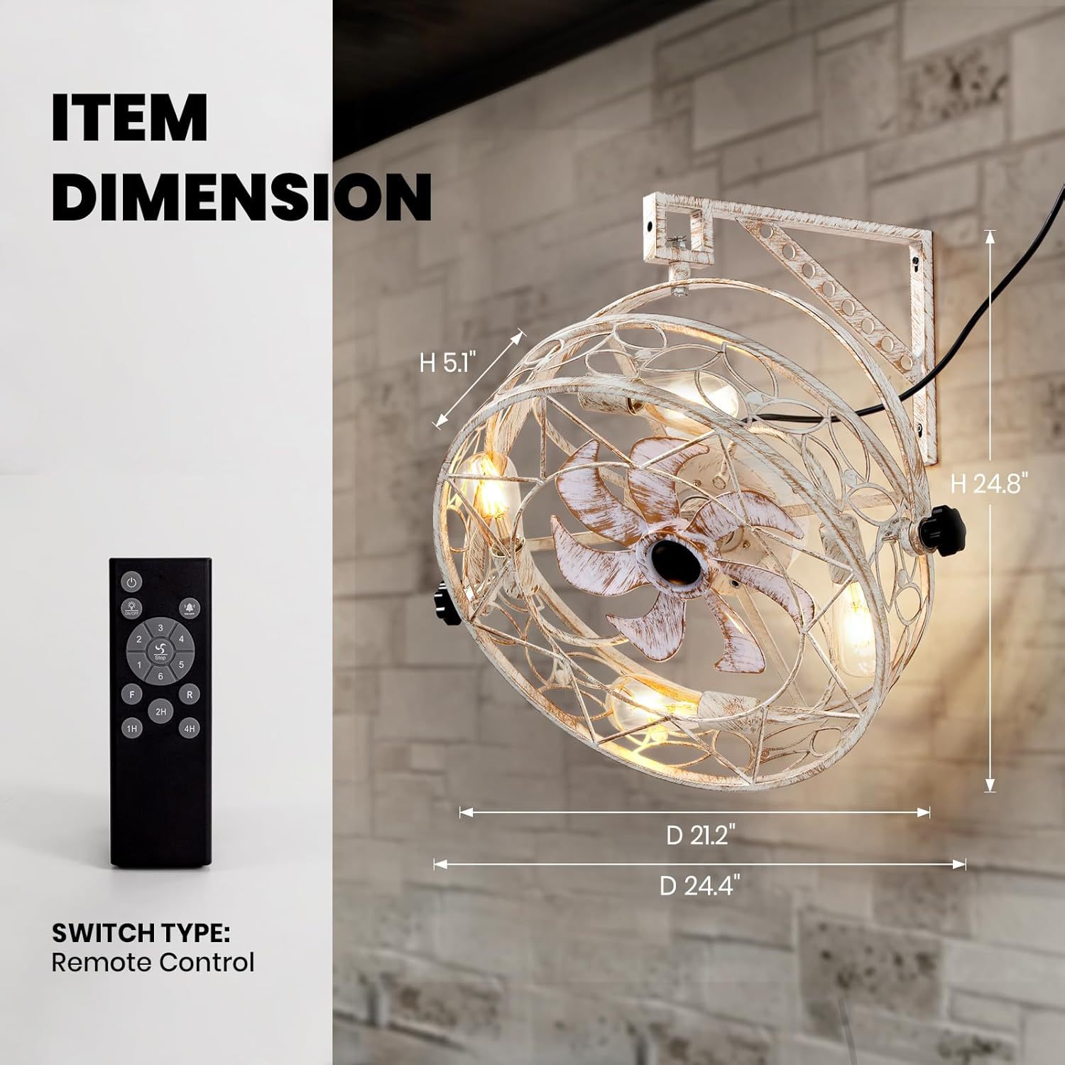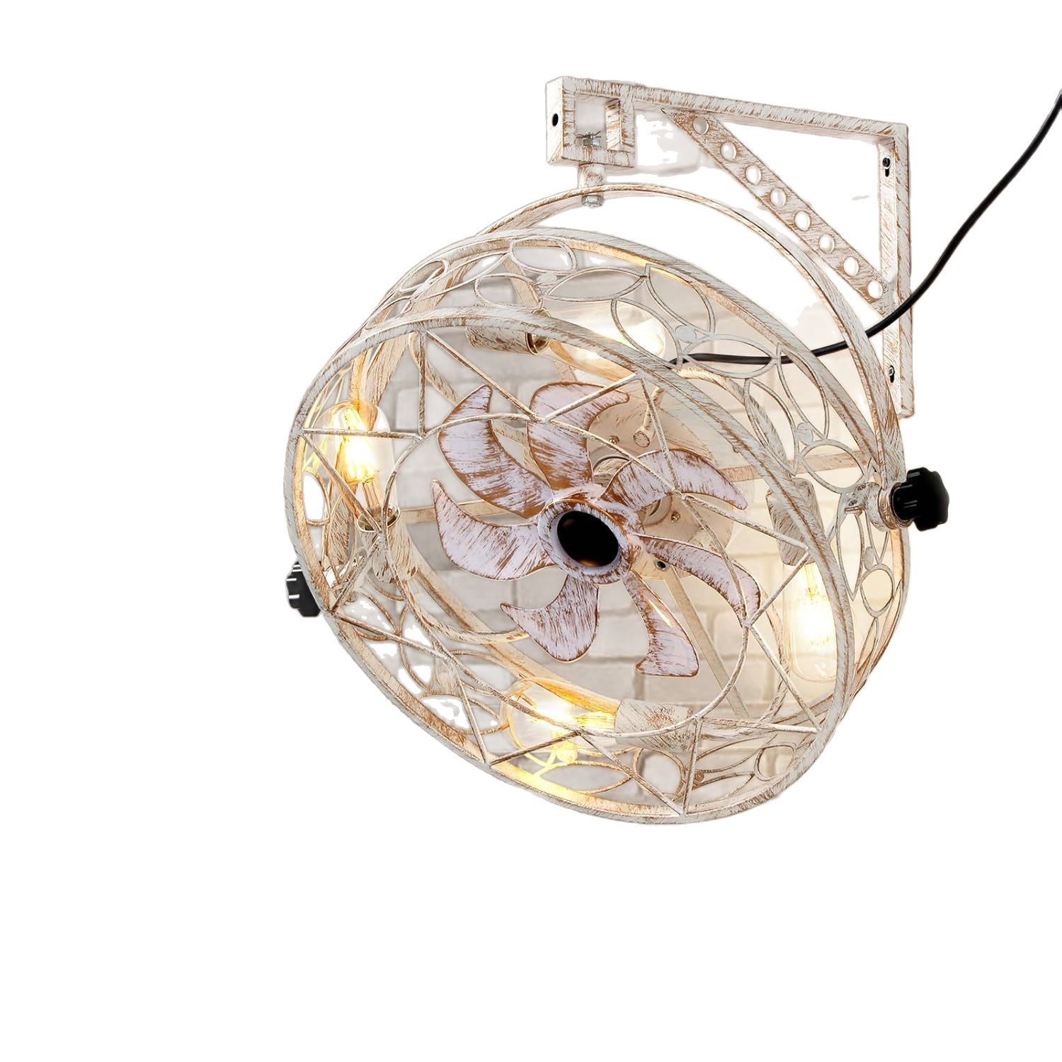 美式复古白擦金风壁挂风扇灯亚马逊货源定制壁式铁艺风扇灯摇头