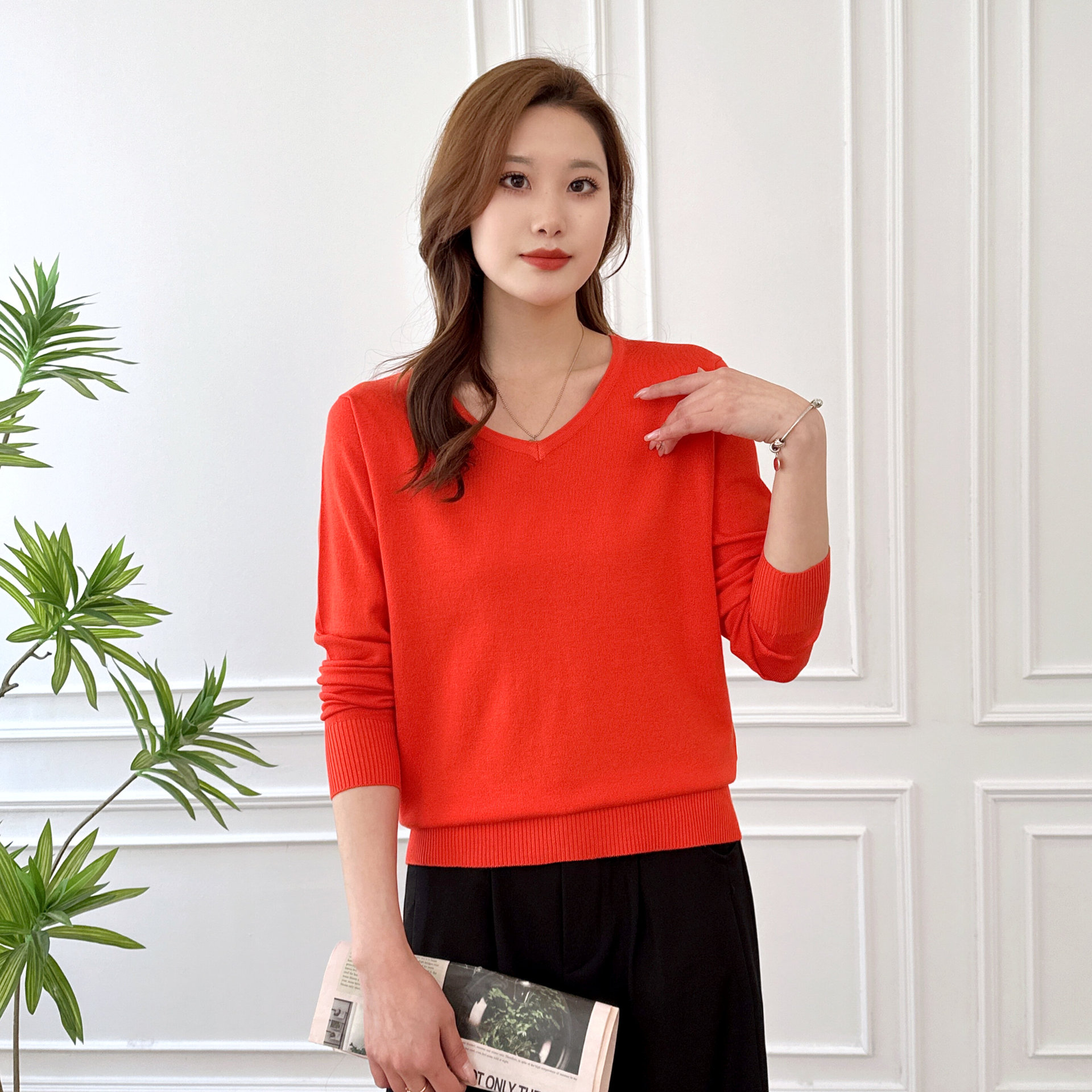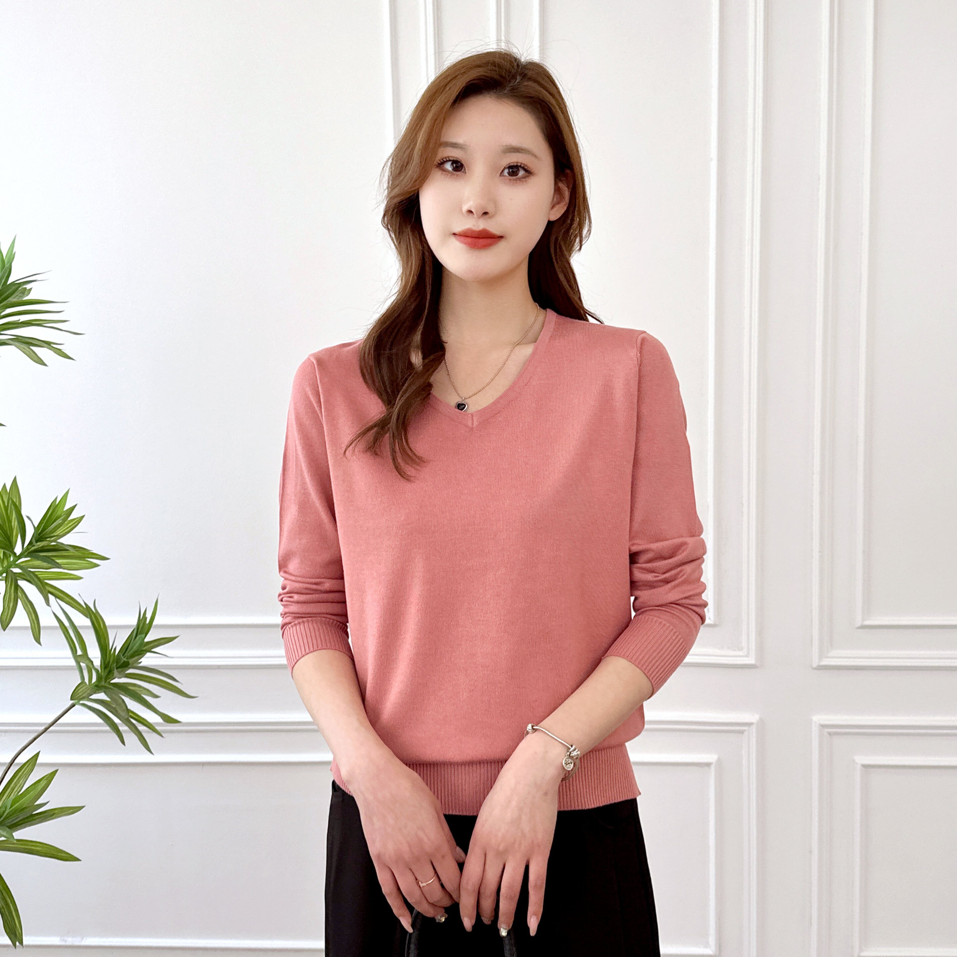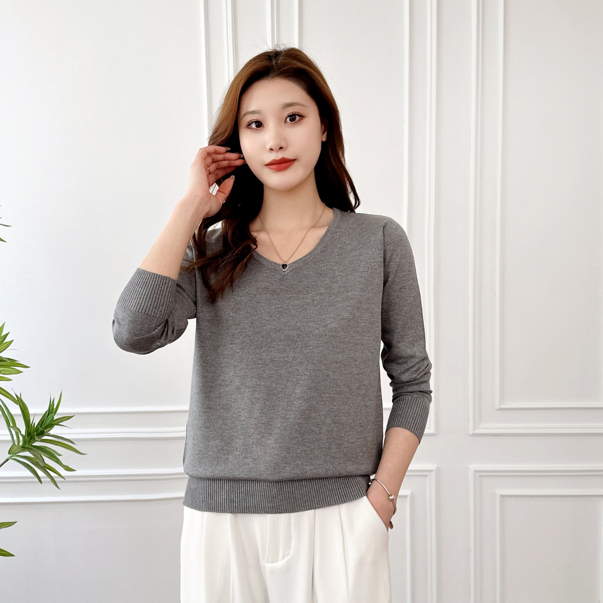 濮院2025春秋新款洋气纯色长袖基础简约百搭打底针织衫外穿V领毛