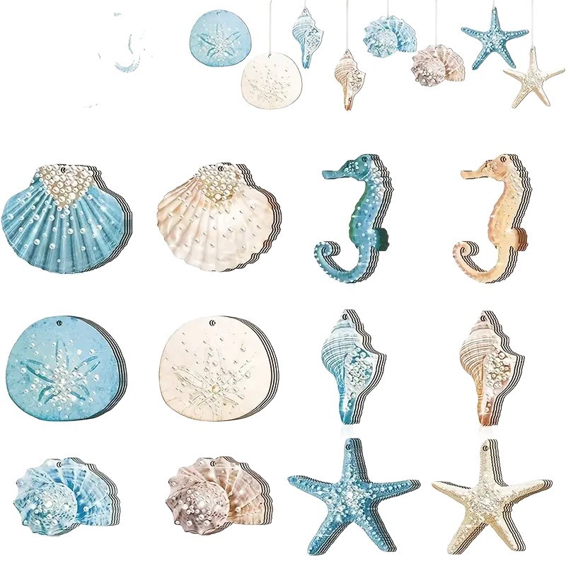 夏季海洋动物饰品木制海滩挂饰海洋生活木片夏季装饰家居小树派对