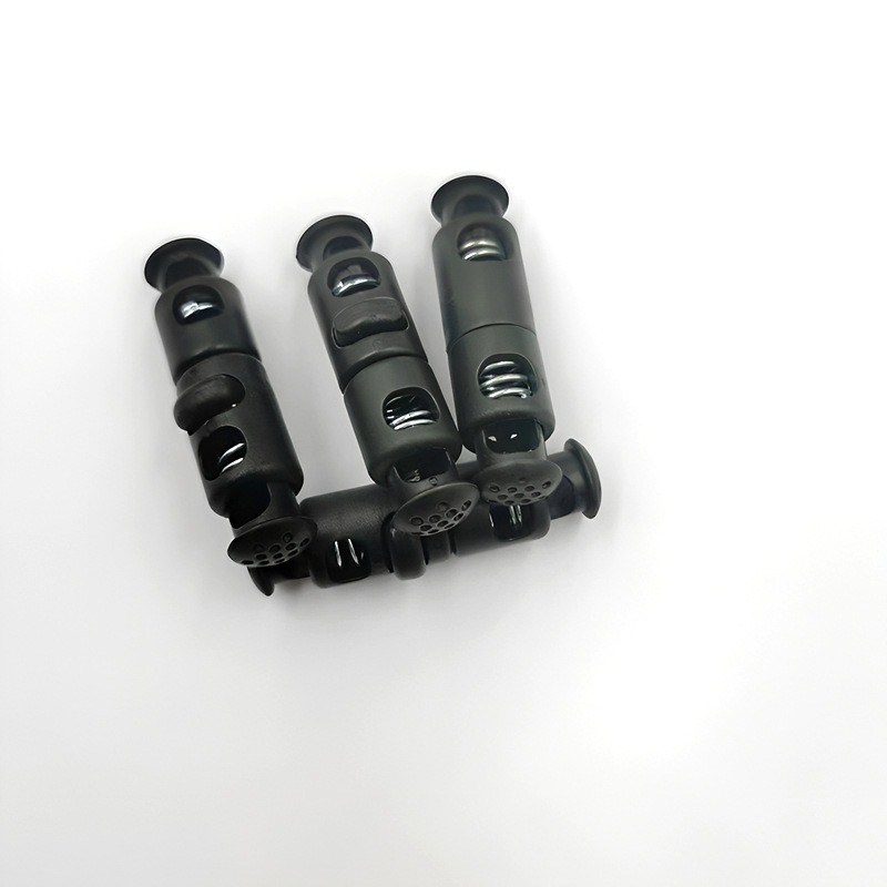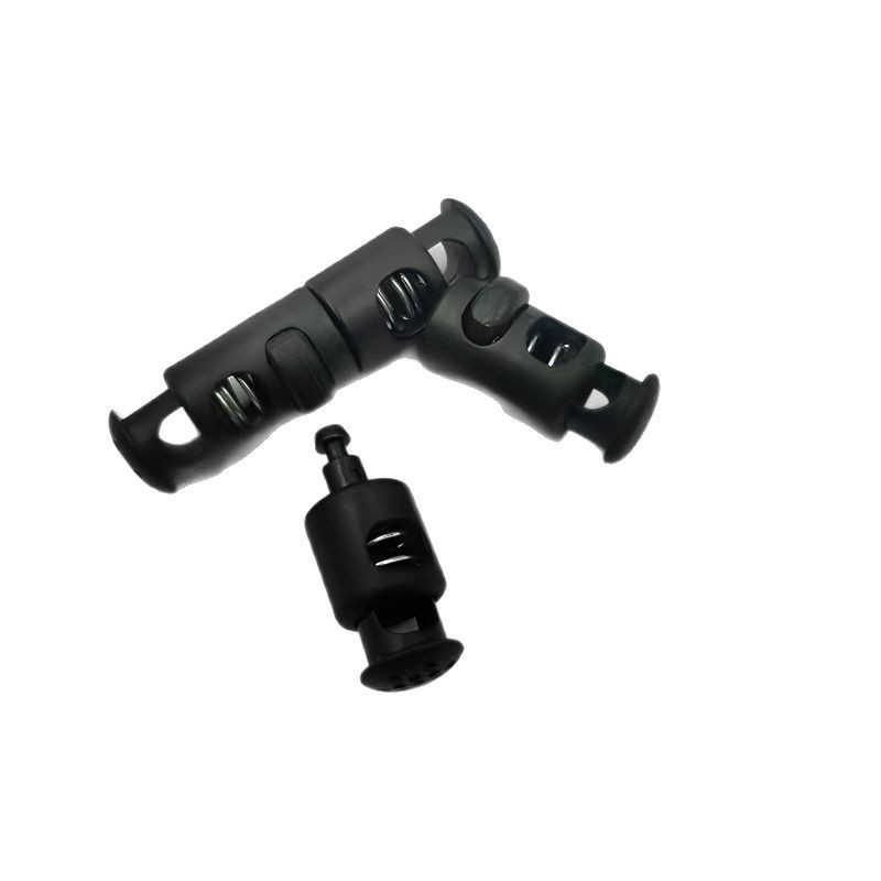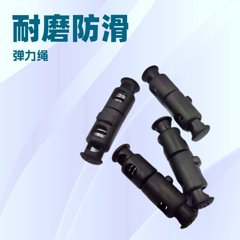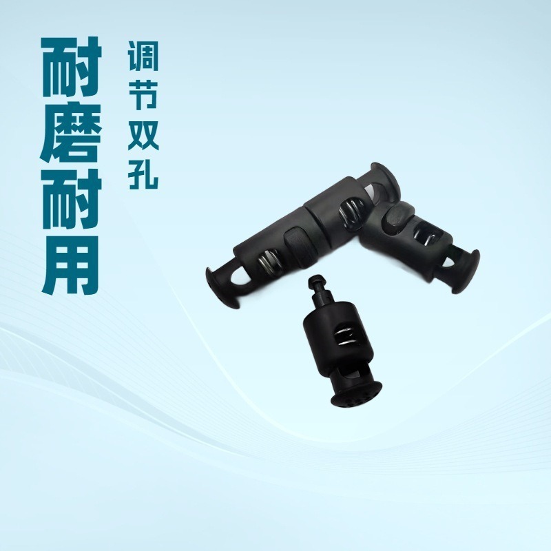现货耐磨塑料弹簧扣可调节双孔弹力绳锁双头松紧止绳扣调节扣扣具