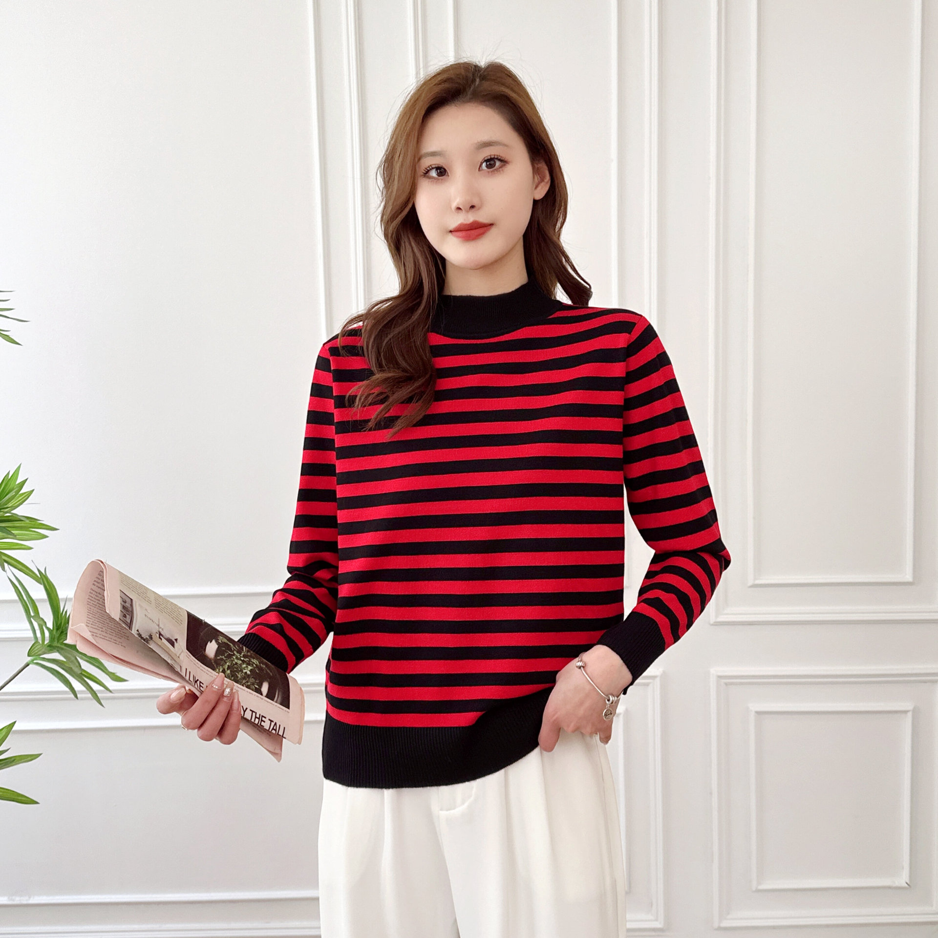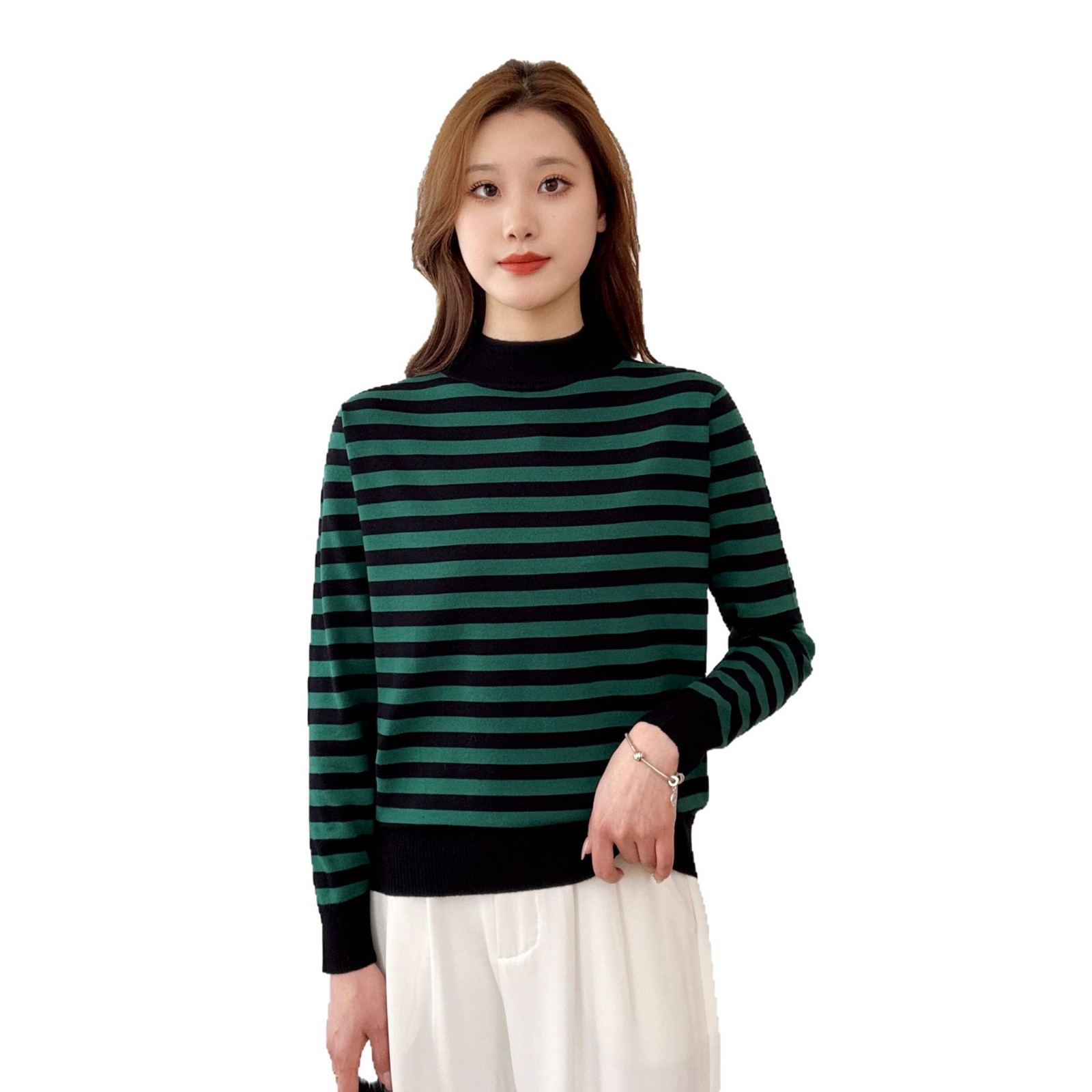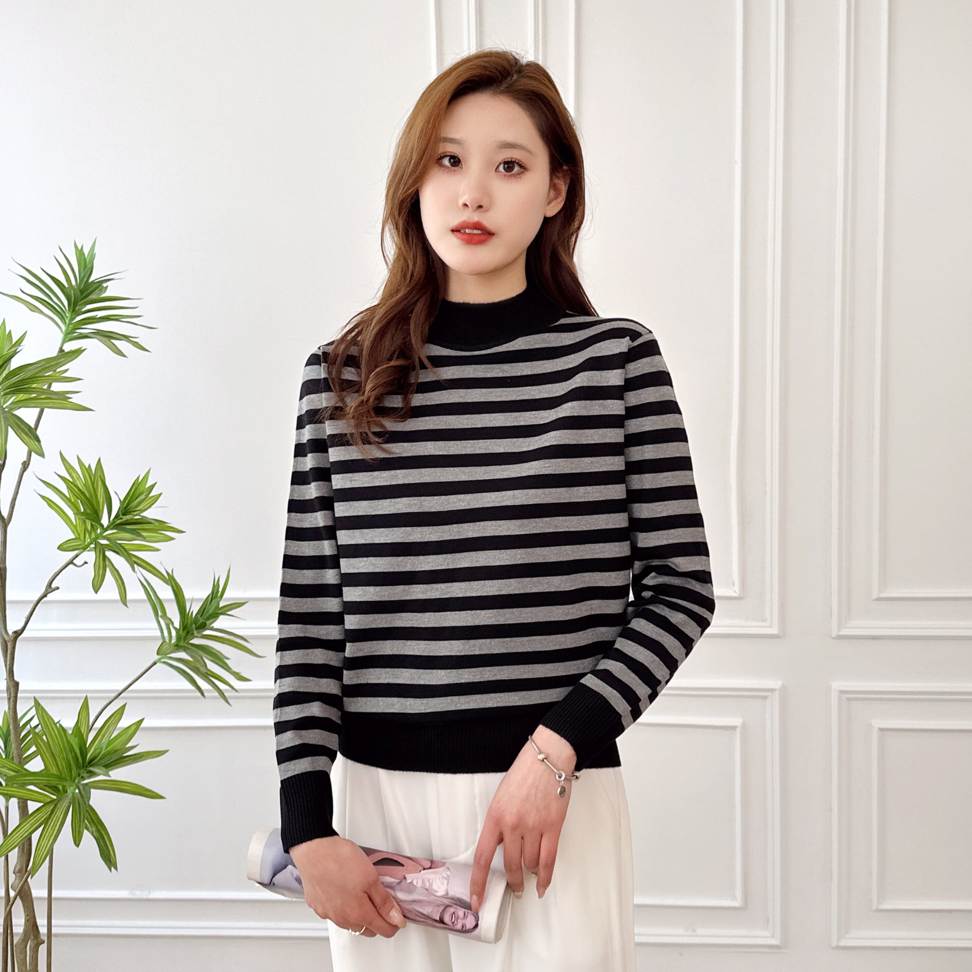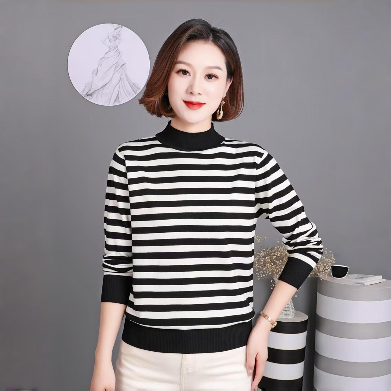 濮院2025春夏新款女士条纹薄款基础简约百搭打底长袖上衣针织衫冰