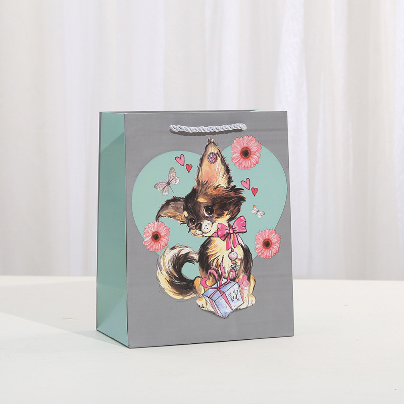 宠物派对礼品袋卡通印花牛皮纸礼物袋商场购物家用收拾袋厂家批发
