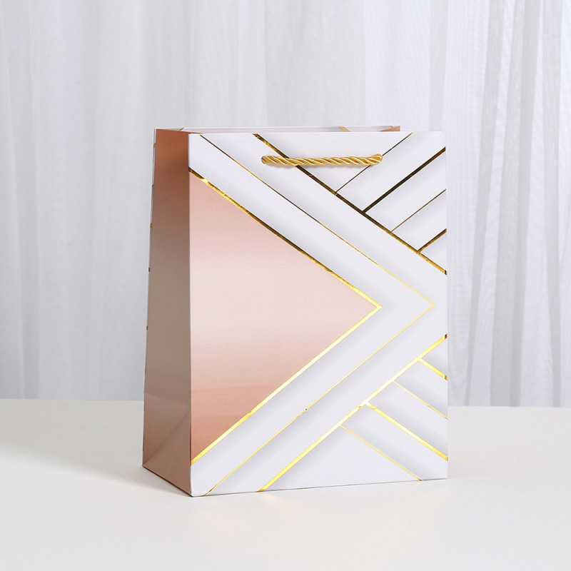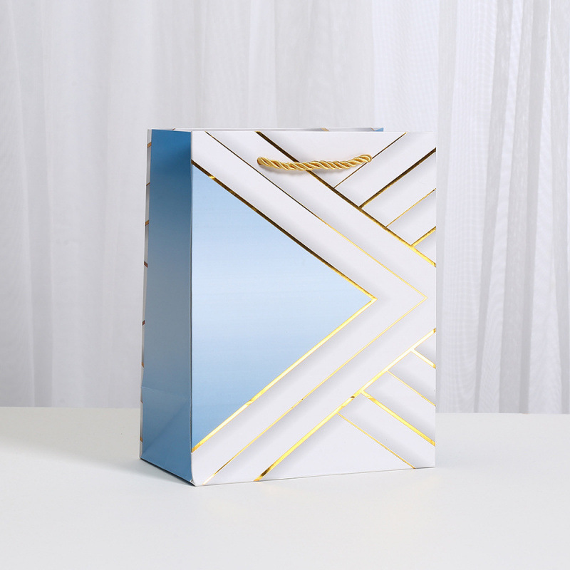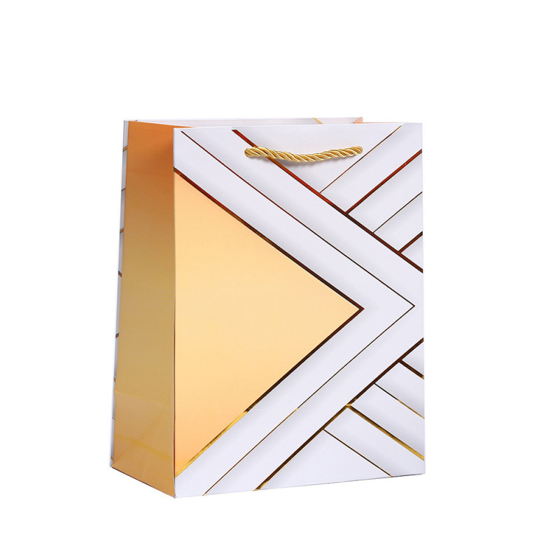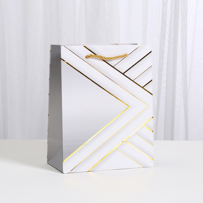 烫金礼品袋几何印花包装袋白卡纸袋商场购物派对糖果手提袋批发
