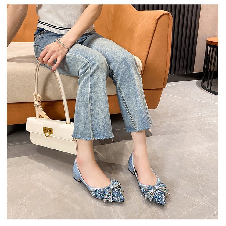 尖头单鞋女2026年春季新款法式浅口水钻珍珠软底瓢鞋粗跟百搭女鞋