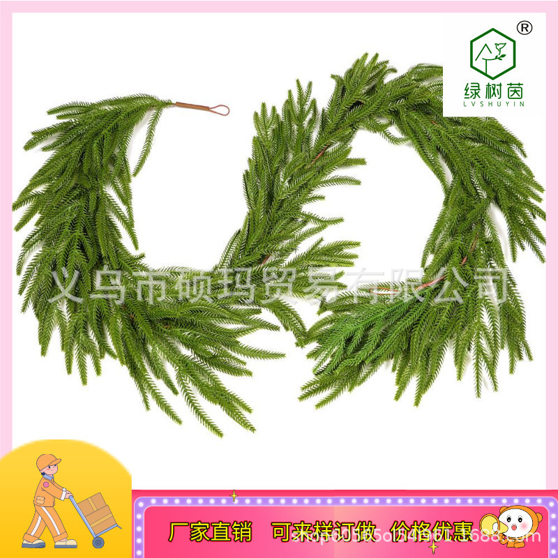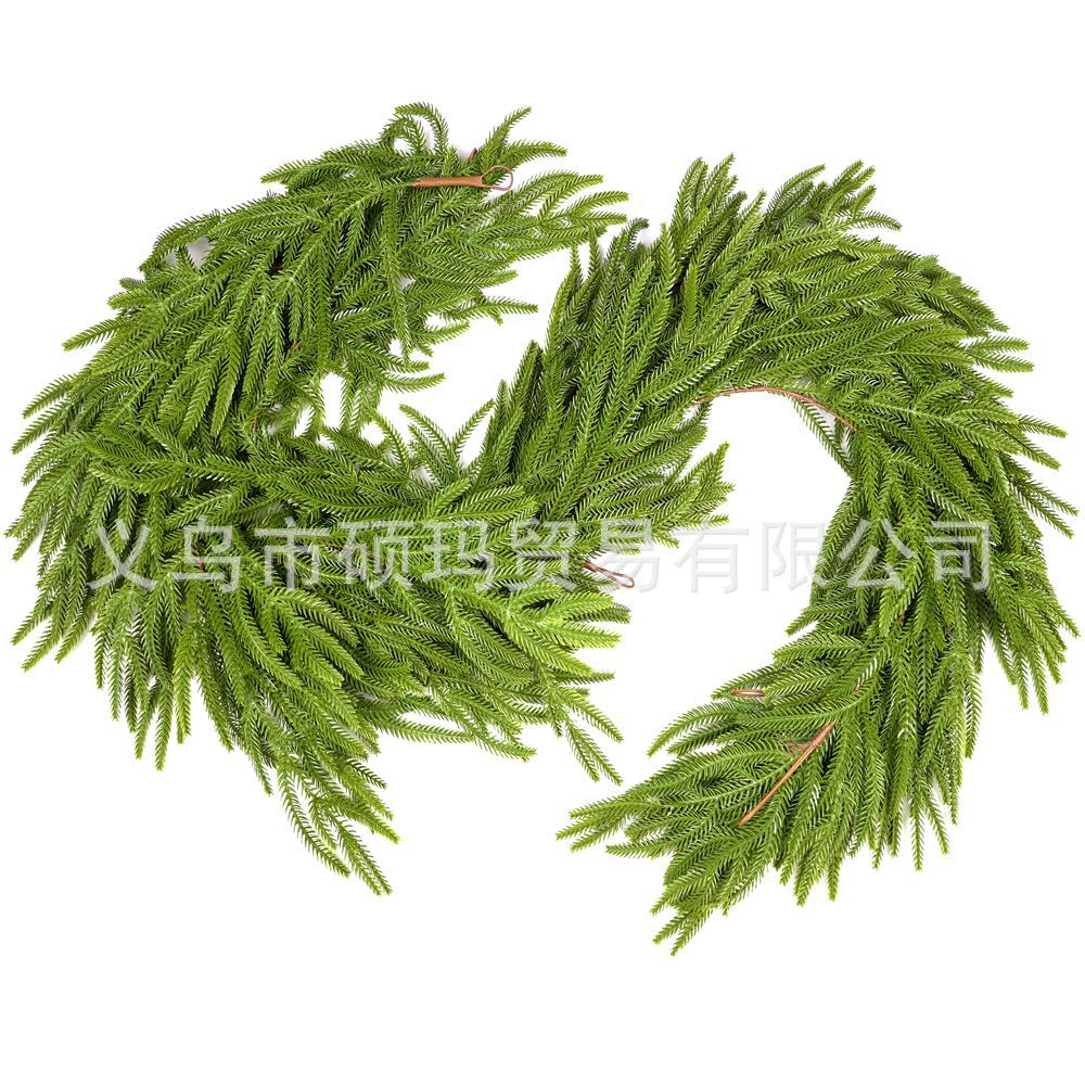 亚马逊仿真PE软胶松针180cm人造福克斯松针藤条家居装饰圣诞节绿