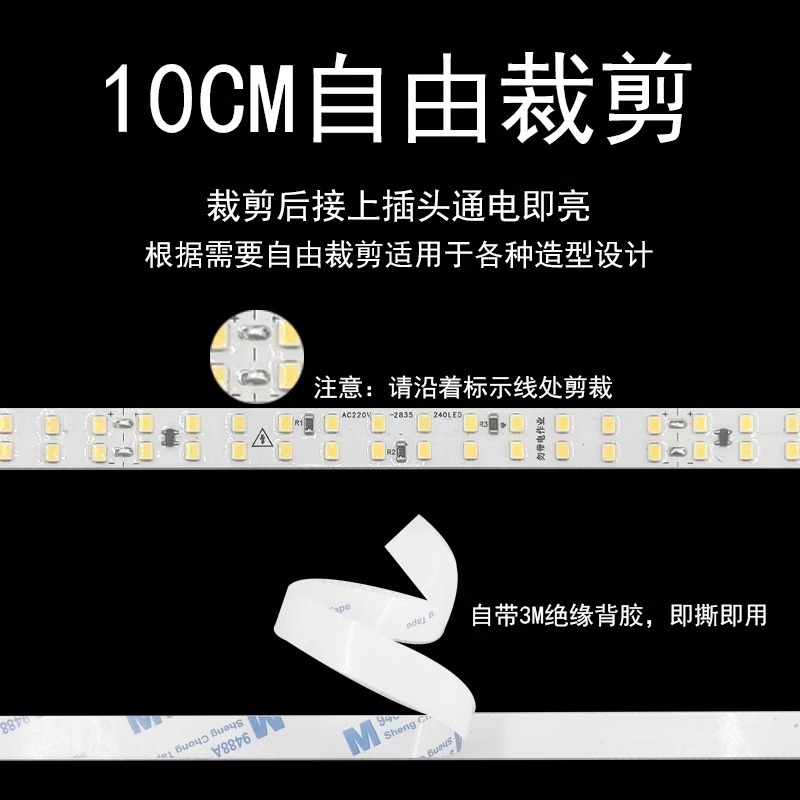 ✅超亮防水220V自粘免驱户外摆摊灯带家用客厅照明直播补光软灯条
