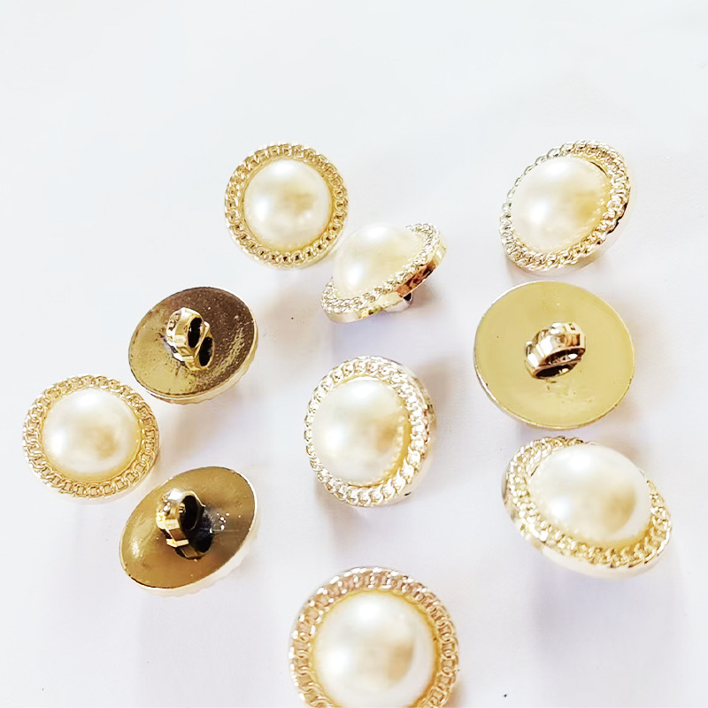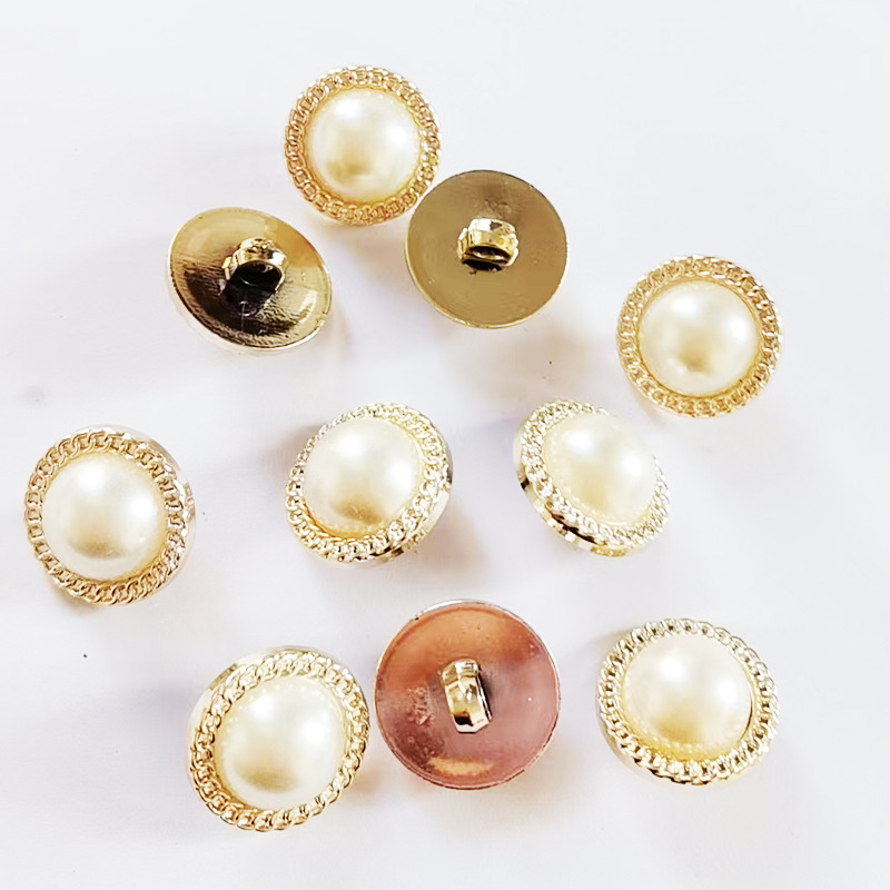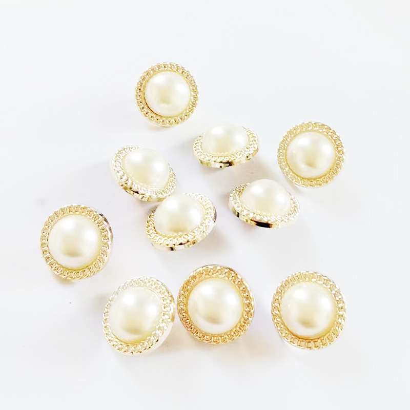 小香风珍珠双拼高档衬衫圆形服装女毛衣金边手缝扣子厂家批发