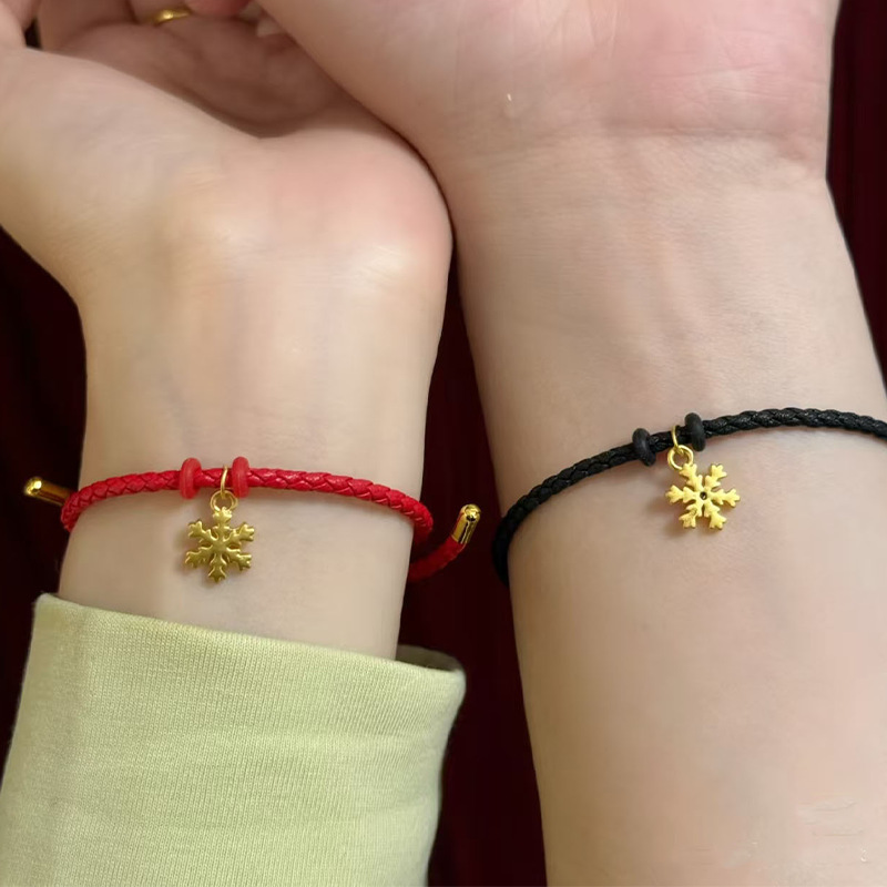 难哄章若楠温以凡桑延同款雪花叶子手绳情侣可调节编织皮绳情人节