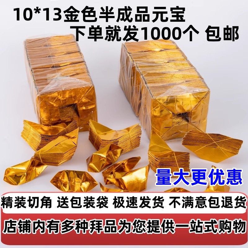 金元宝半成品1000个锡箔纸烧纸祭祀套餐黄纸银元宝纸钱冥币清明钵