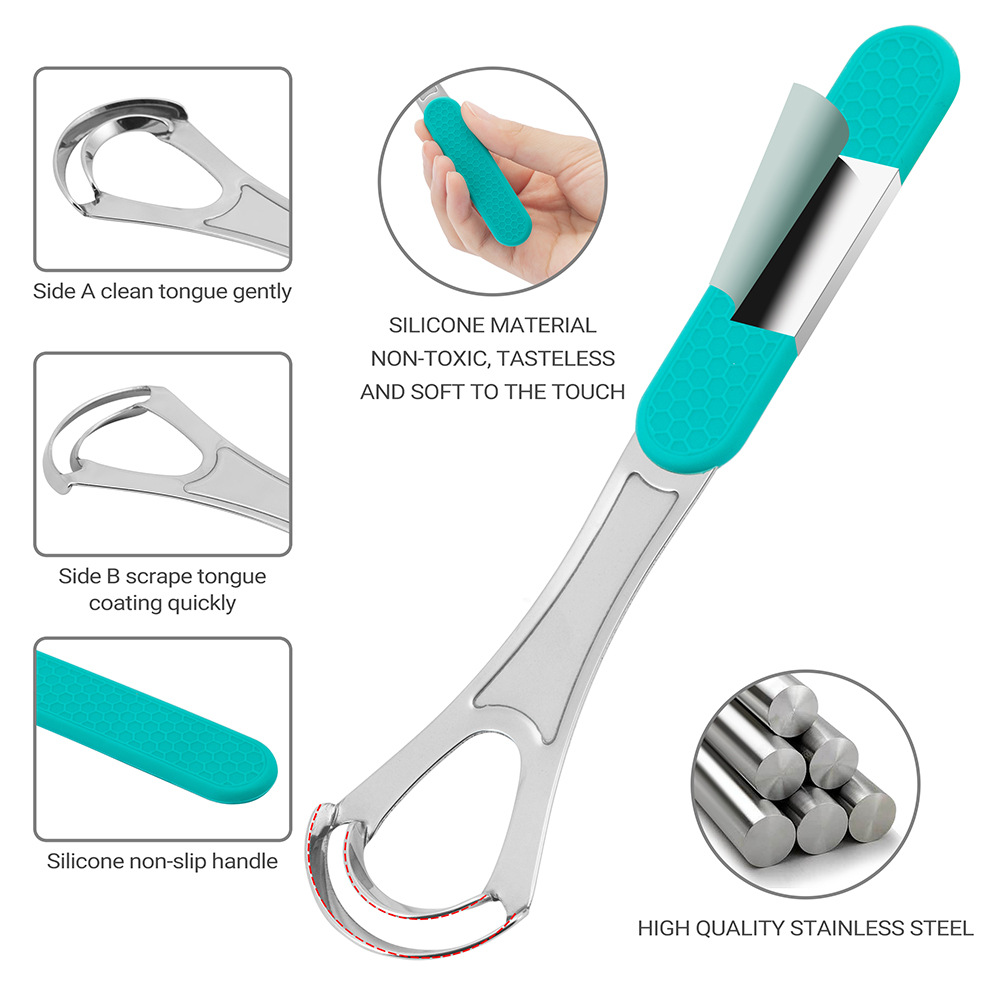 工厂推荐盒装双层舌苔刷刮舌器不锈钢大开口舌苔清洁神器跨境批发