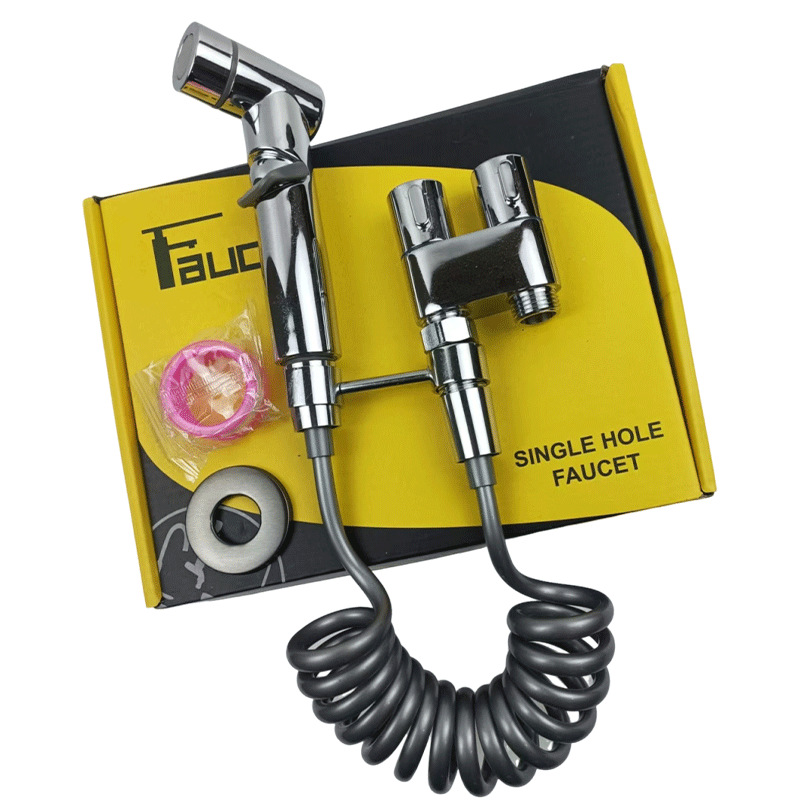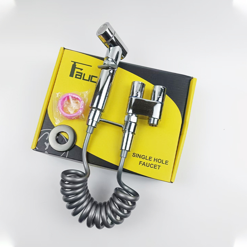 不锈钢家用马桶喷枪一进二出马桶伴侣卫生间三角阀增压喷头冲洗器