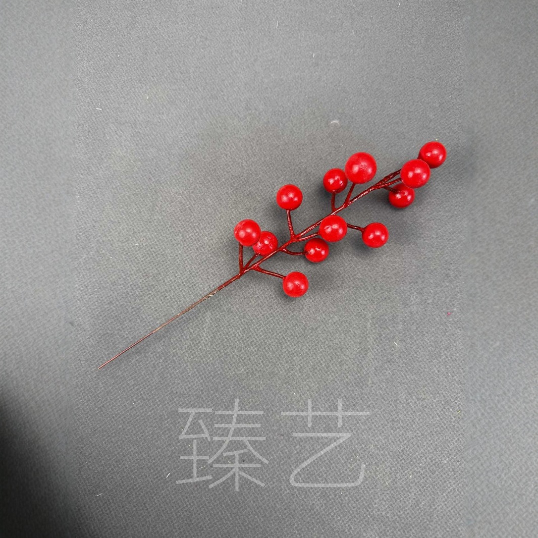 发财果现货红浆果仿真冬青果春节摆件年宵花工厂过年红果福桶配件