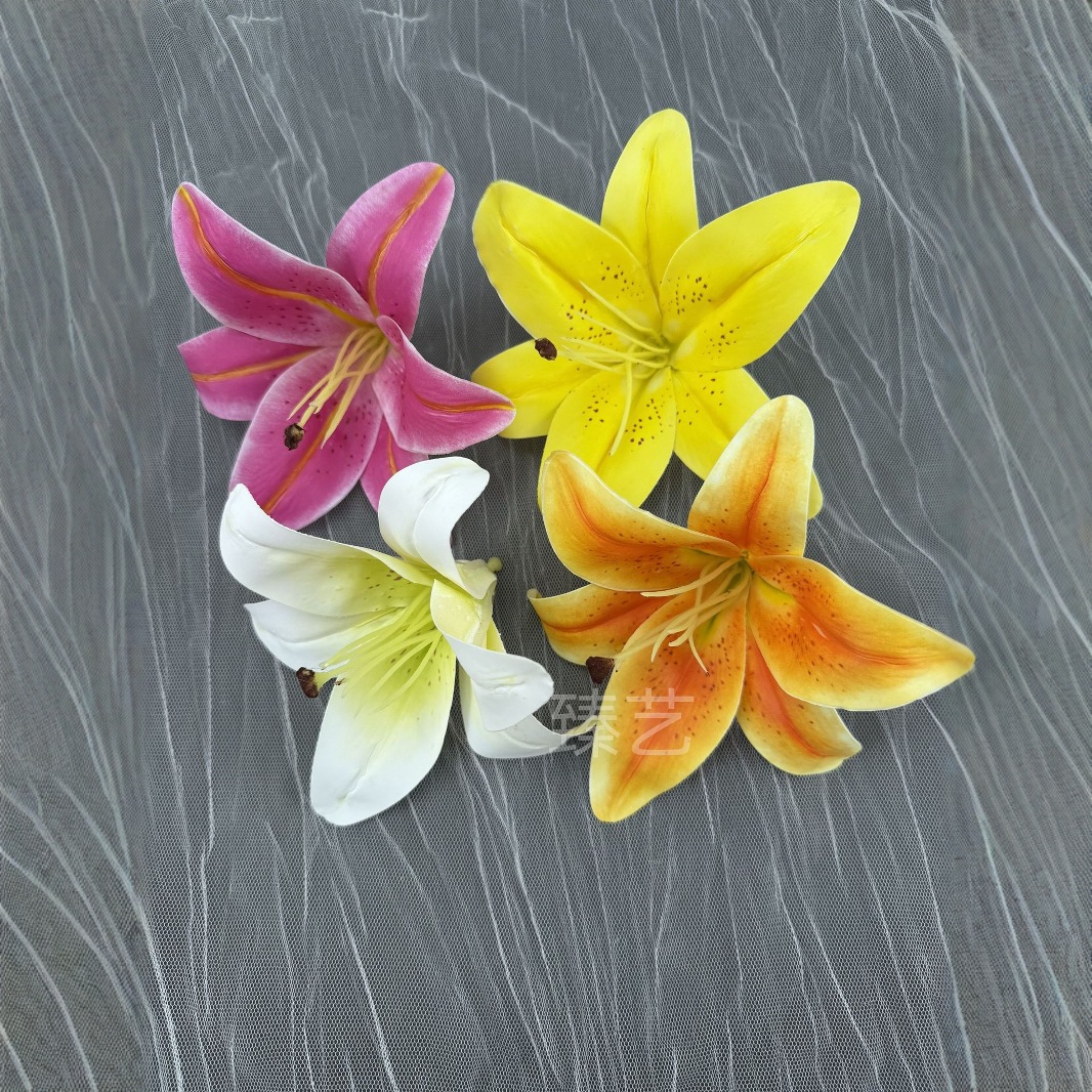 3D胶片打印PU百合花头大号手感仿真虎兰花朵婚庆装饰DIY假花批发