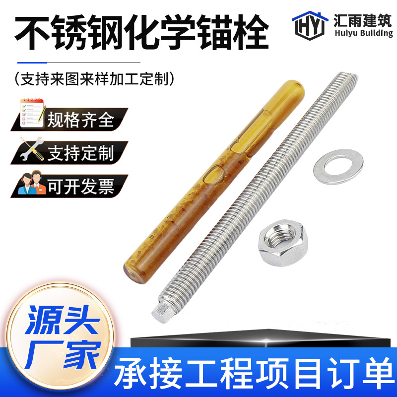 304不锈钢化学锚栓带药水锚栓国标建筑配件化学锚固膨胀螺栓螺丝