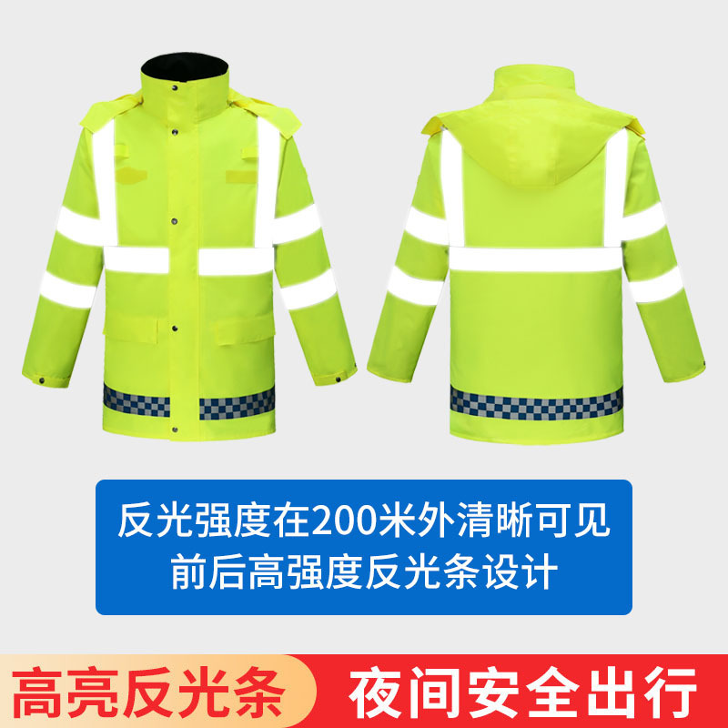 冬季批发反光棉服套装摩托车防暴雨骑行雨衣交通执勤保暖反光服