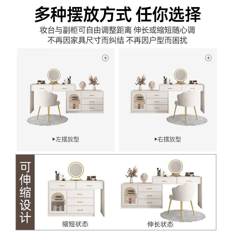 | 颜色 | 暖白梳妆台三抽斗柜【可伸缩】 | 颜色 | 暖白梳妆台六抽斗柜【可伸缩】 |