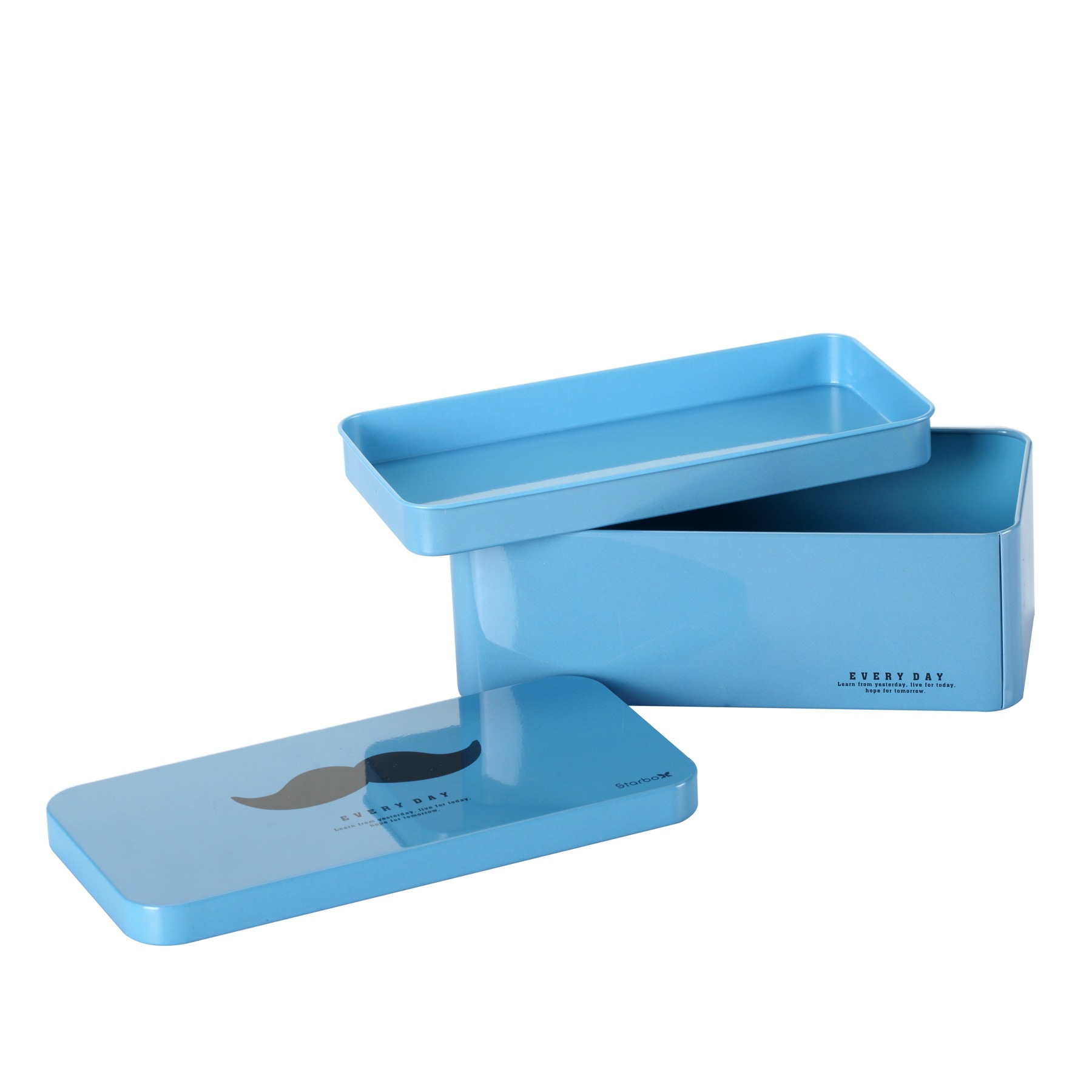 长方形礼品铁盒双面印刷文具礼品盒日用品桌面收纳ins风马口铁罐