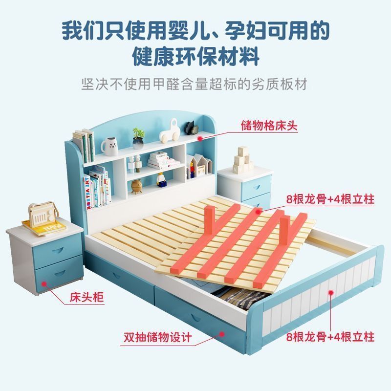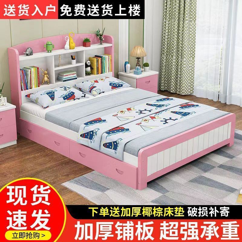 实木床儿童床现代简约男童床1米5学生床家用单双人卧室儿童床房间