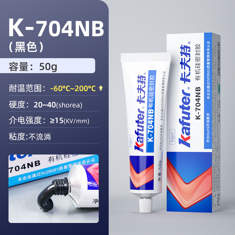 卡夫特704NB黑色电子胶元器件固定防水耐高温防水有机硅密封胶50g