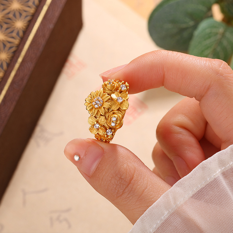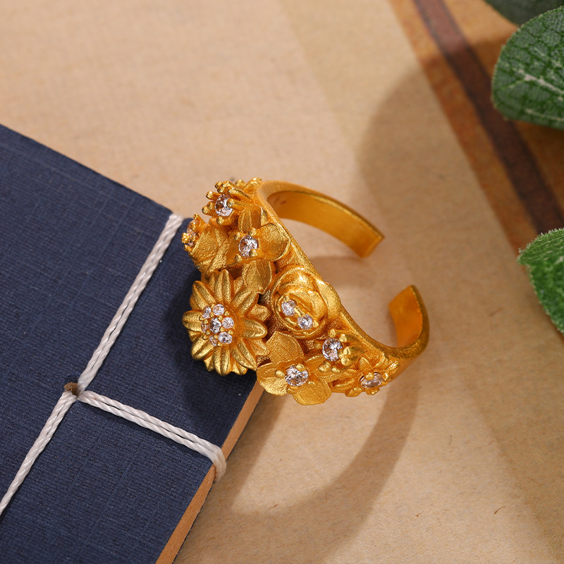 跨境越南沙金宫廷风繁花似锦戒指女轻奢高级感气质食指戒指环配饰