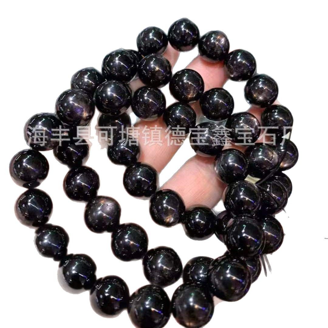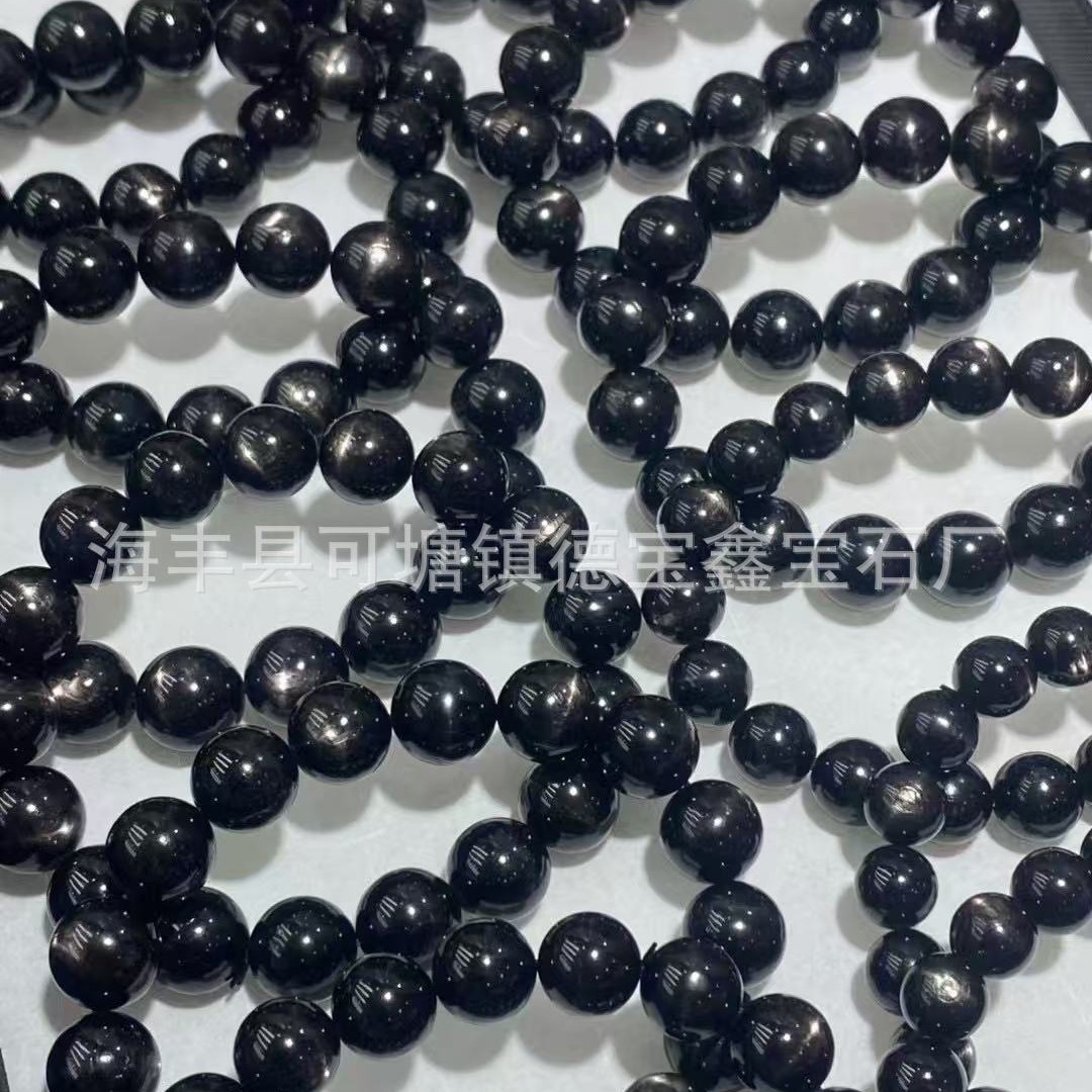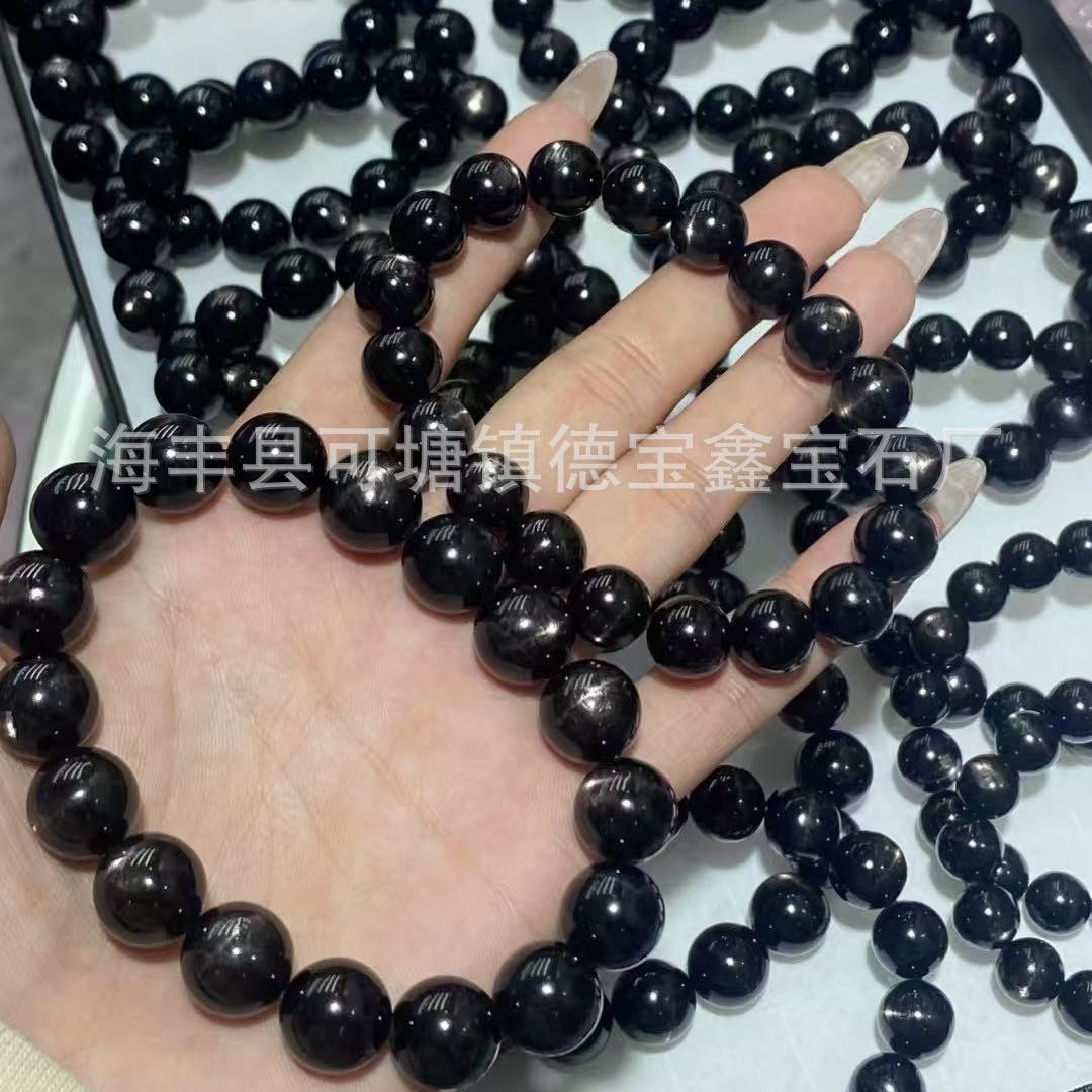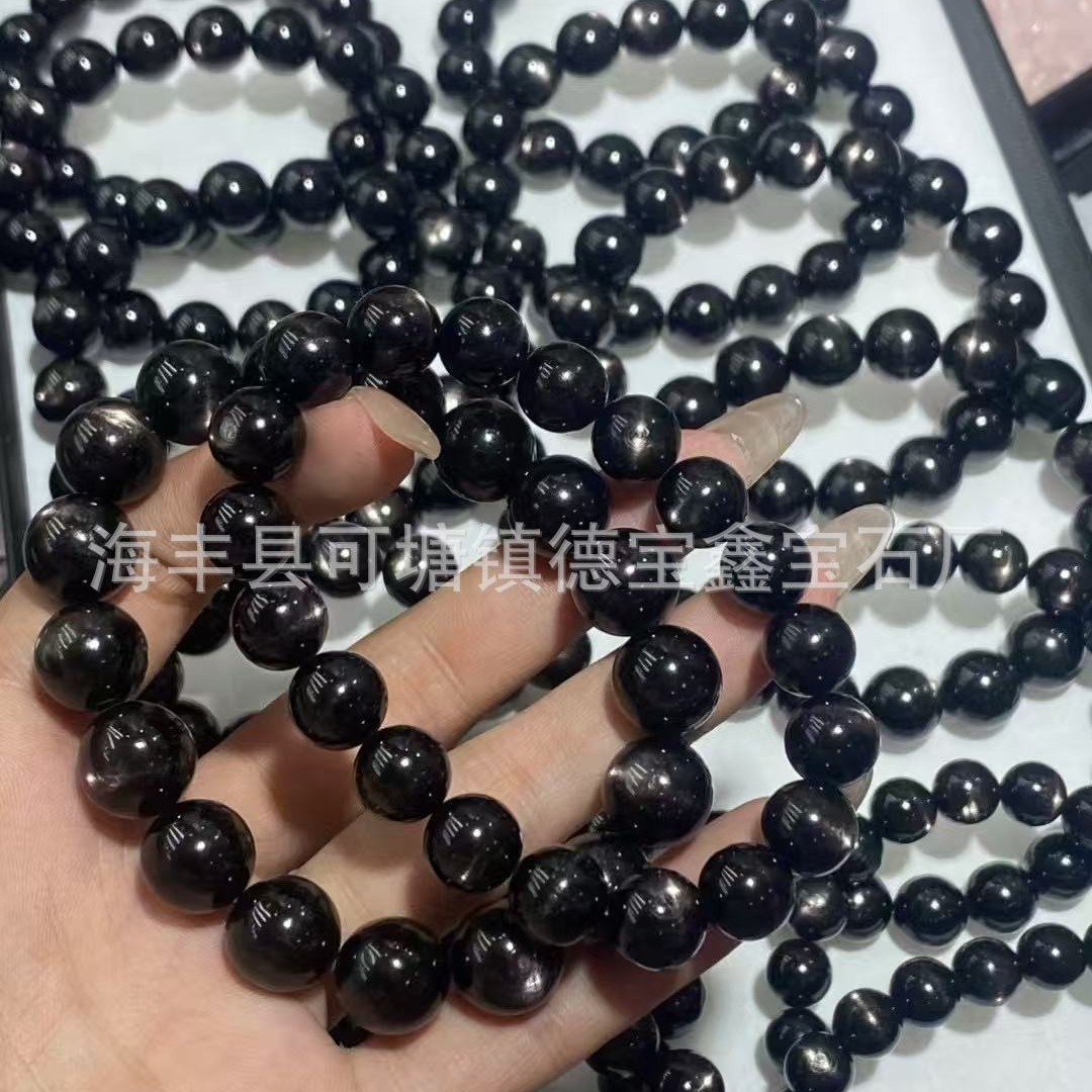 天然金运石手链 黑银线圆珠单圈手链 猫眼金运石手串水晶手饰批发