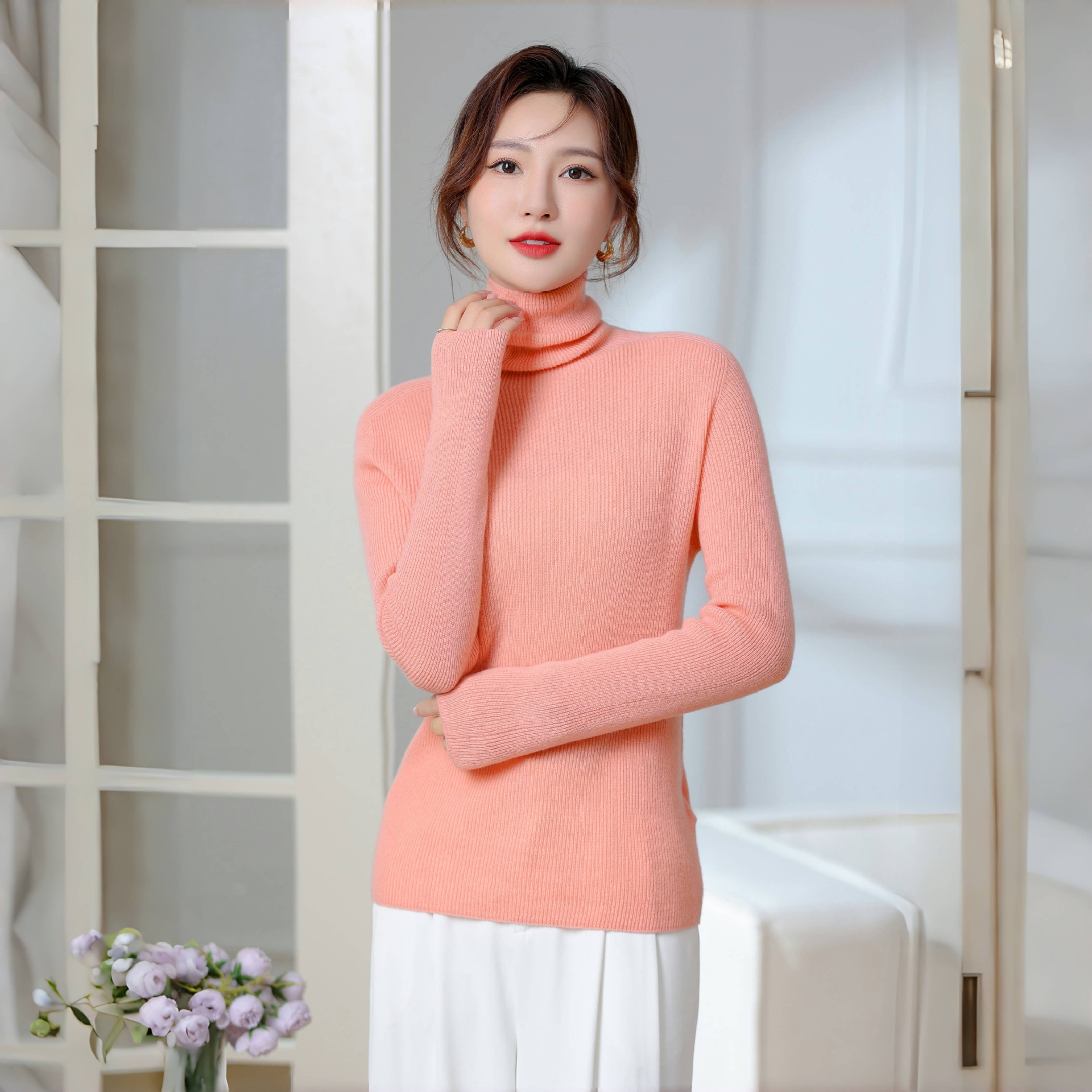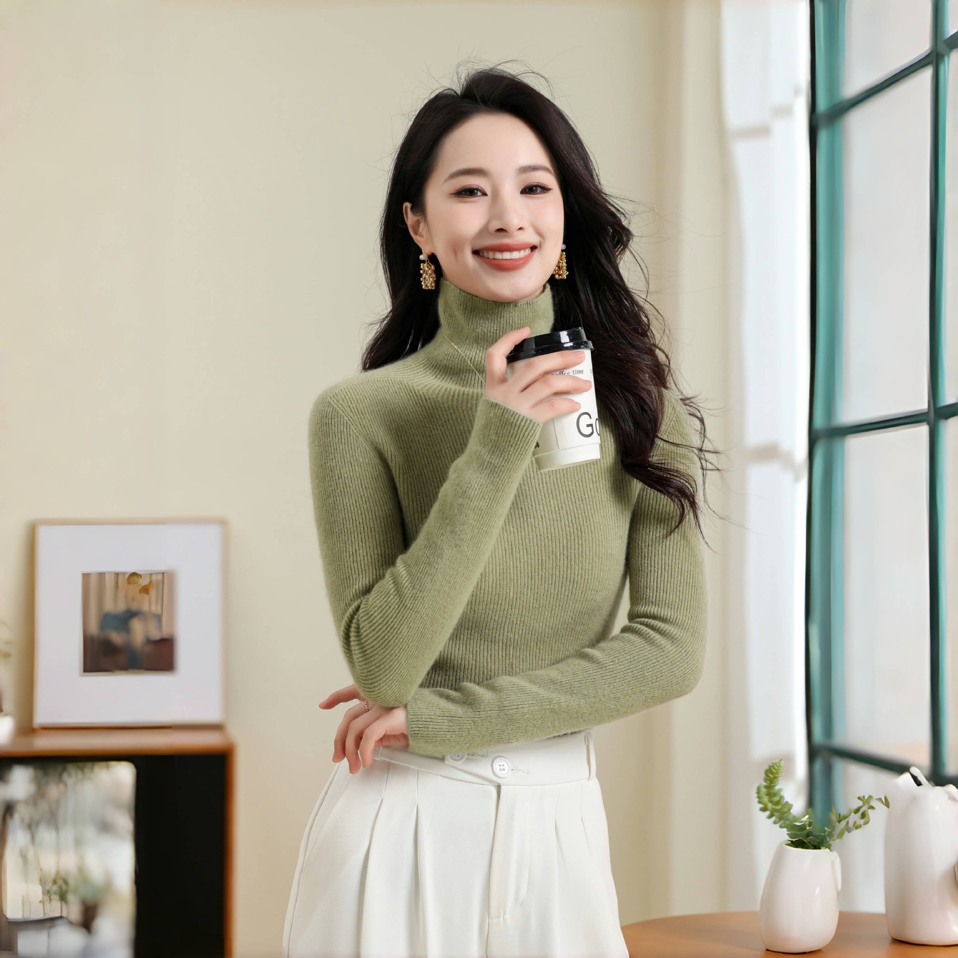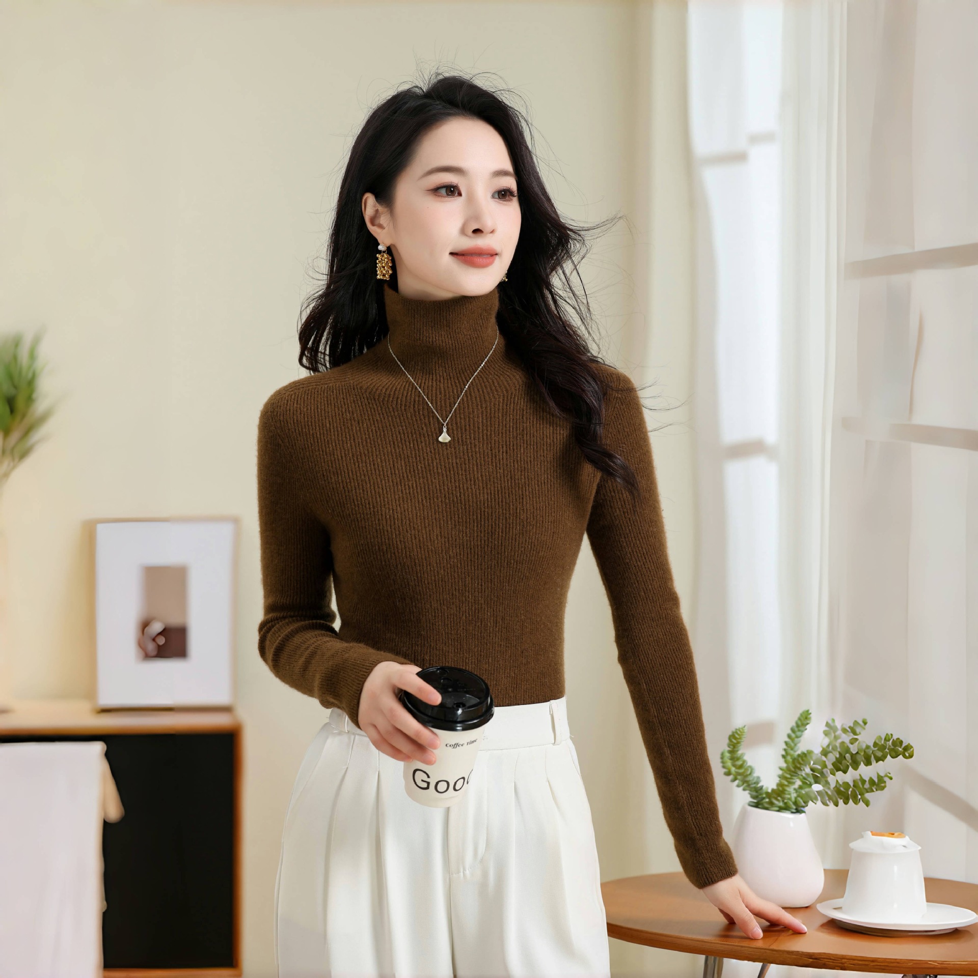 100%羊绒高龄弹力一体成衣女2025秋冬内搭长袖软糯针织打底慵懒风