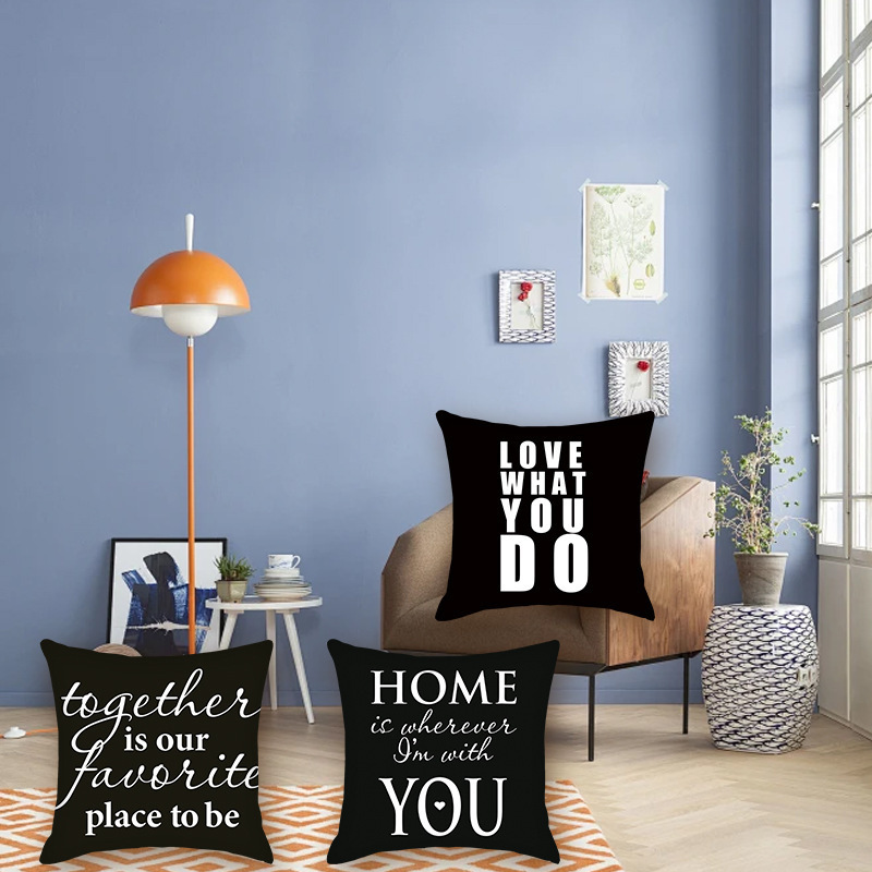 新款黑色现代简约字母系列沙发靠垫抱枕套床头卧室抱枕