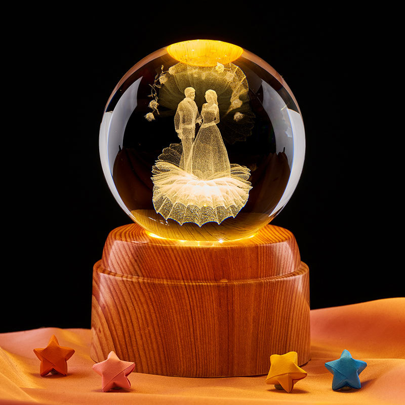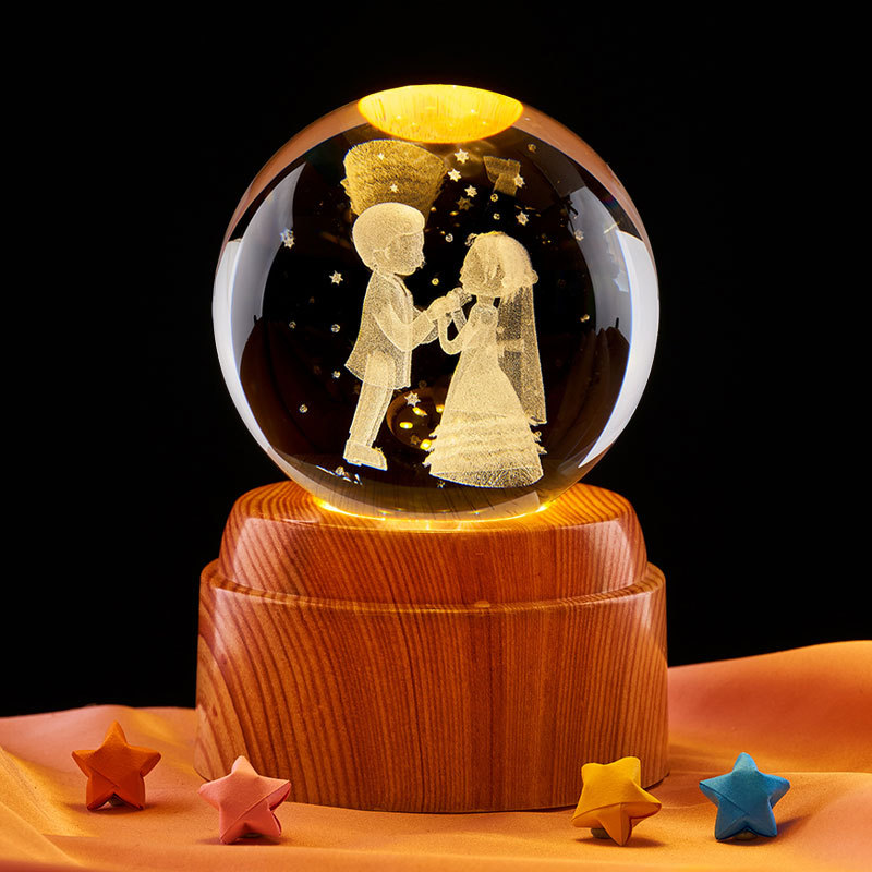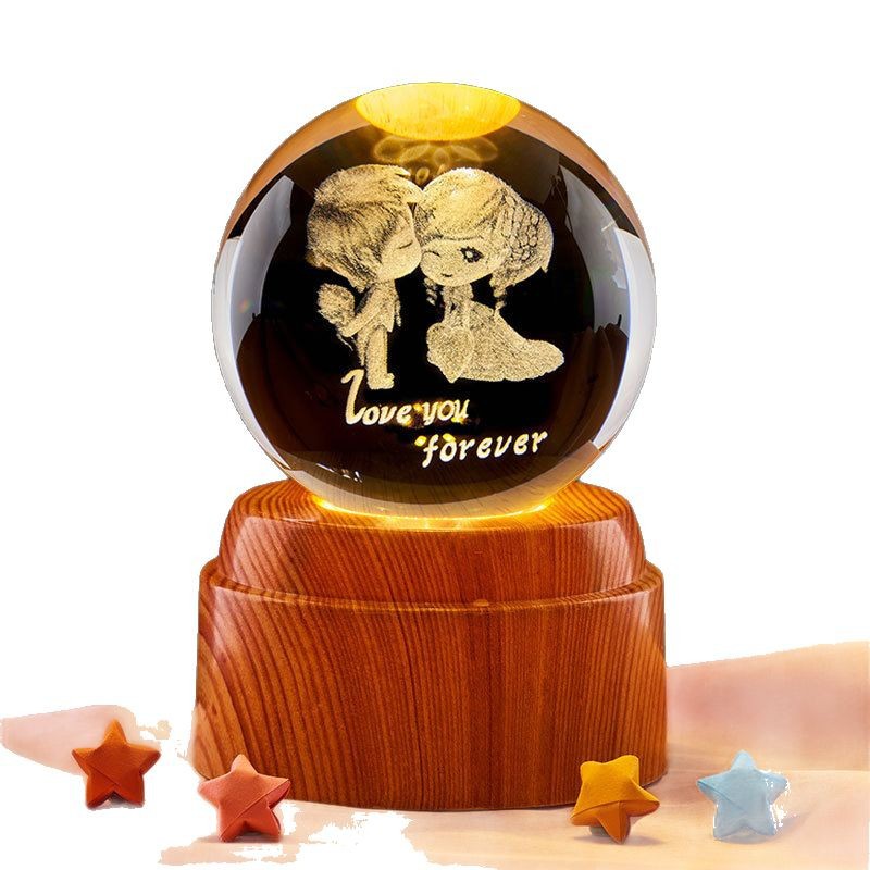 跨境水晶球内雕发光小夜灯创意桌面装饰摆件木底座情侣纪念日礼物