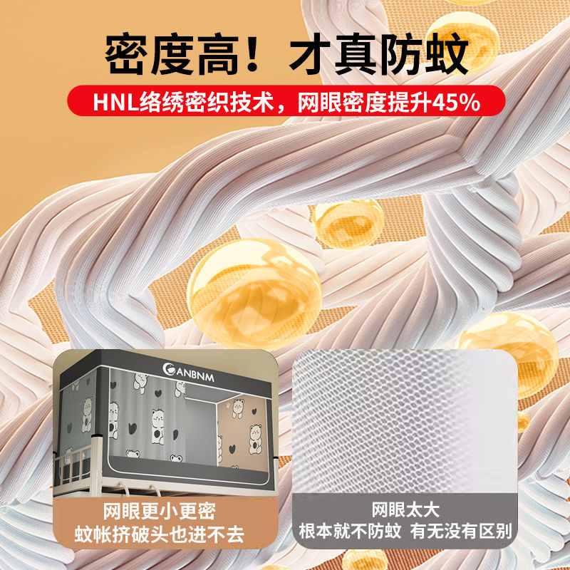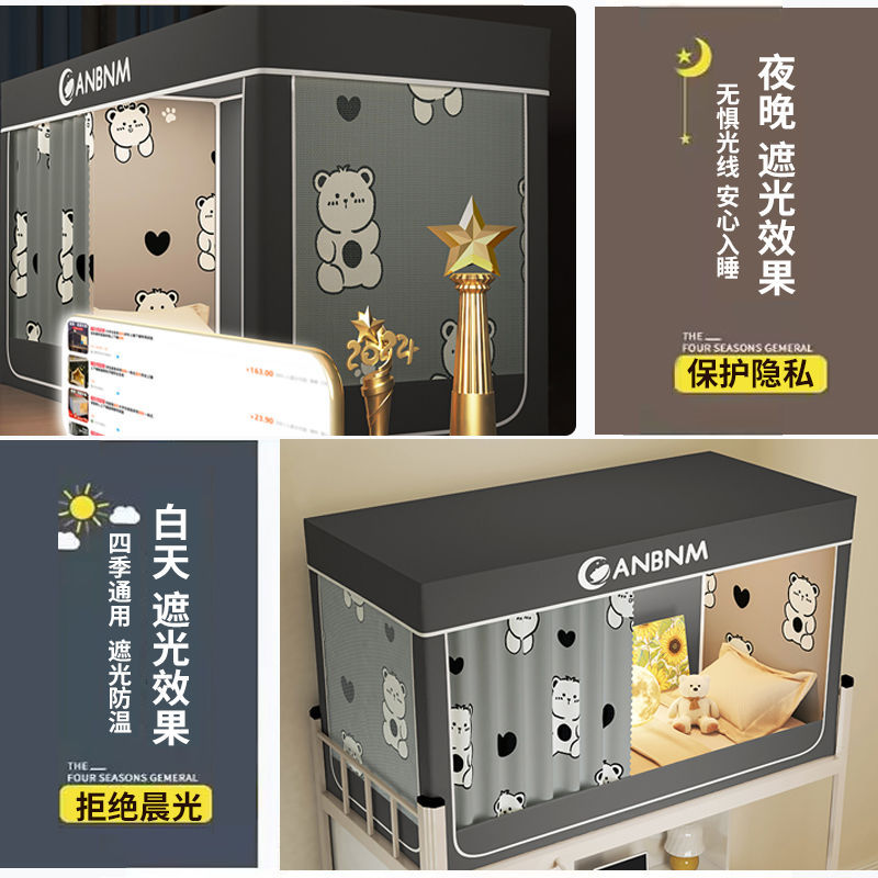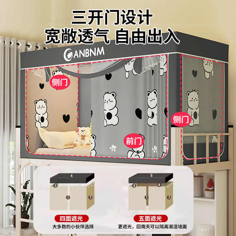 南极人免安装拉链方帐学生宿舍遮光床帘全包围三开门床幔加粗支架