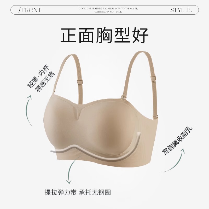 粉底液无痕抹胸美背内衣女2025新款无肩带小胸聚拢隐形防滑文胸罩