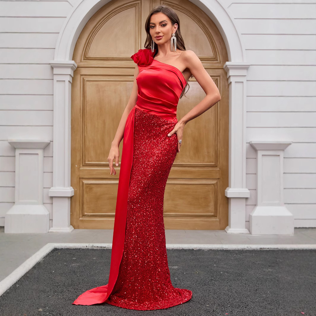 新款一件代发 礼服成人礼公主 无袖花朵亮片高端优雅聚会礼服 礼
