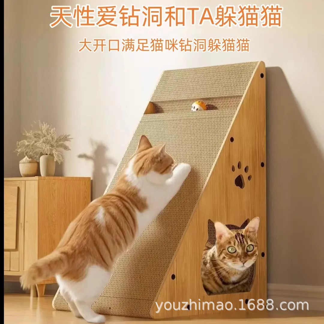 立式三角猫抓板猫爬架耐抓瓦楞纸猫爪板防猫抓沙发磨爪器猫咪用品