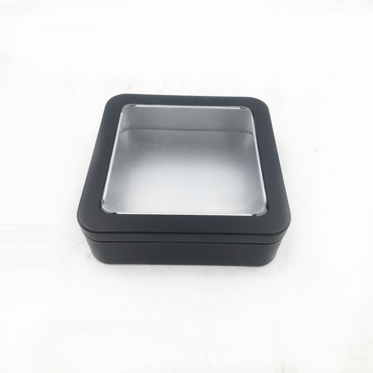 正方形开窗铁盒马口铁曲奇酥包装铁罐男士钱包黑色礼品铁盒子定制