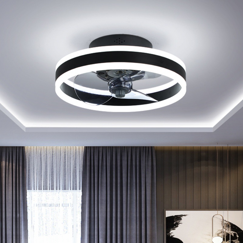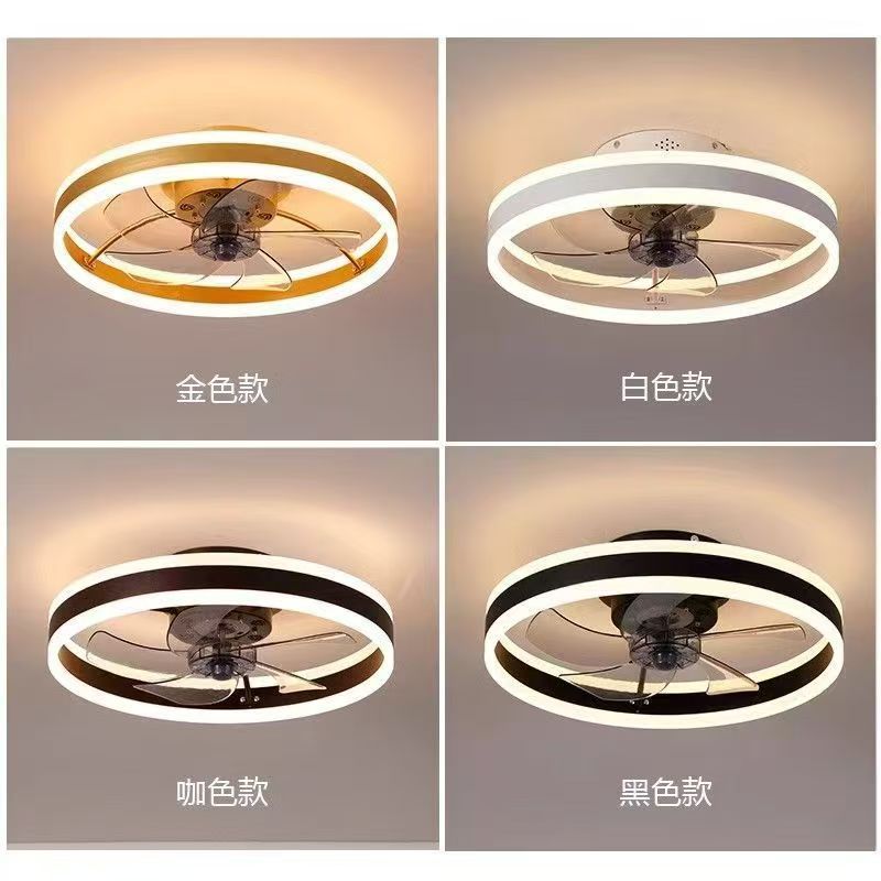 跨境供货风扇吸顶灯北欧餐厅卧室静音变频电扇一体LED智能圆形灯