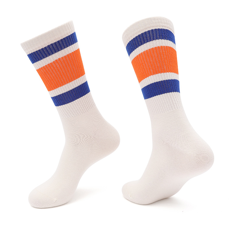 条纹运动袜子男中筒袜子男女款春夏季抗菌防臭透气撞色复古堆堆袜