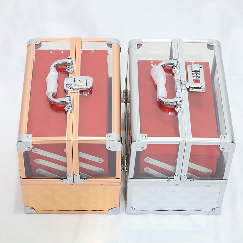 新款大容量双开多层收纳箱专业便携手提化妆箱美甲纹绣小工具箱
