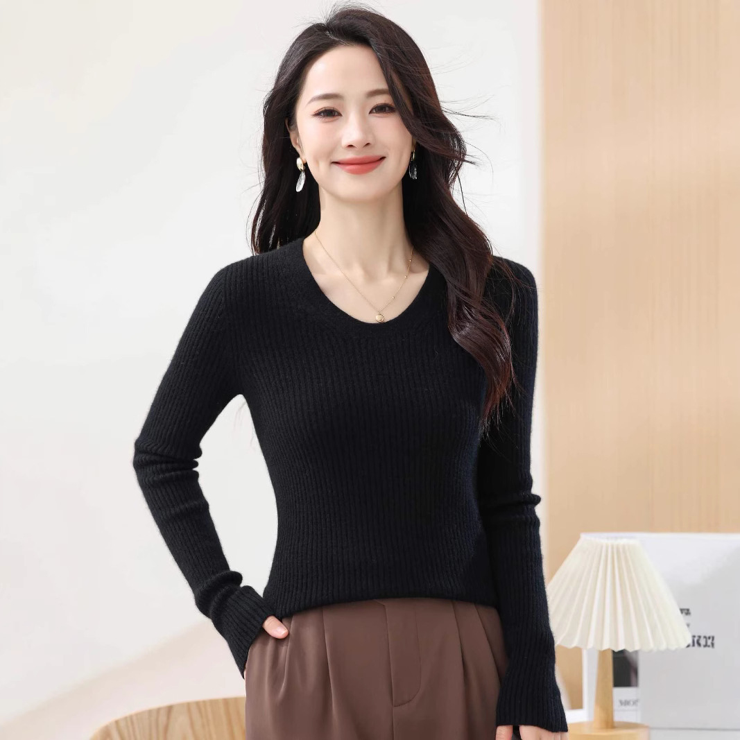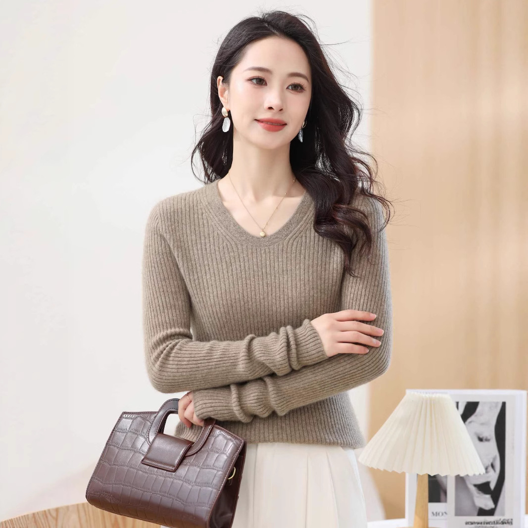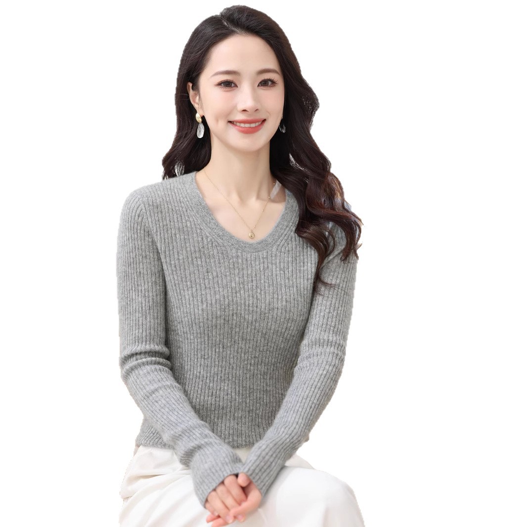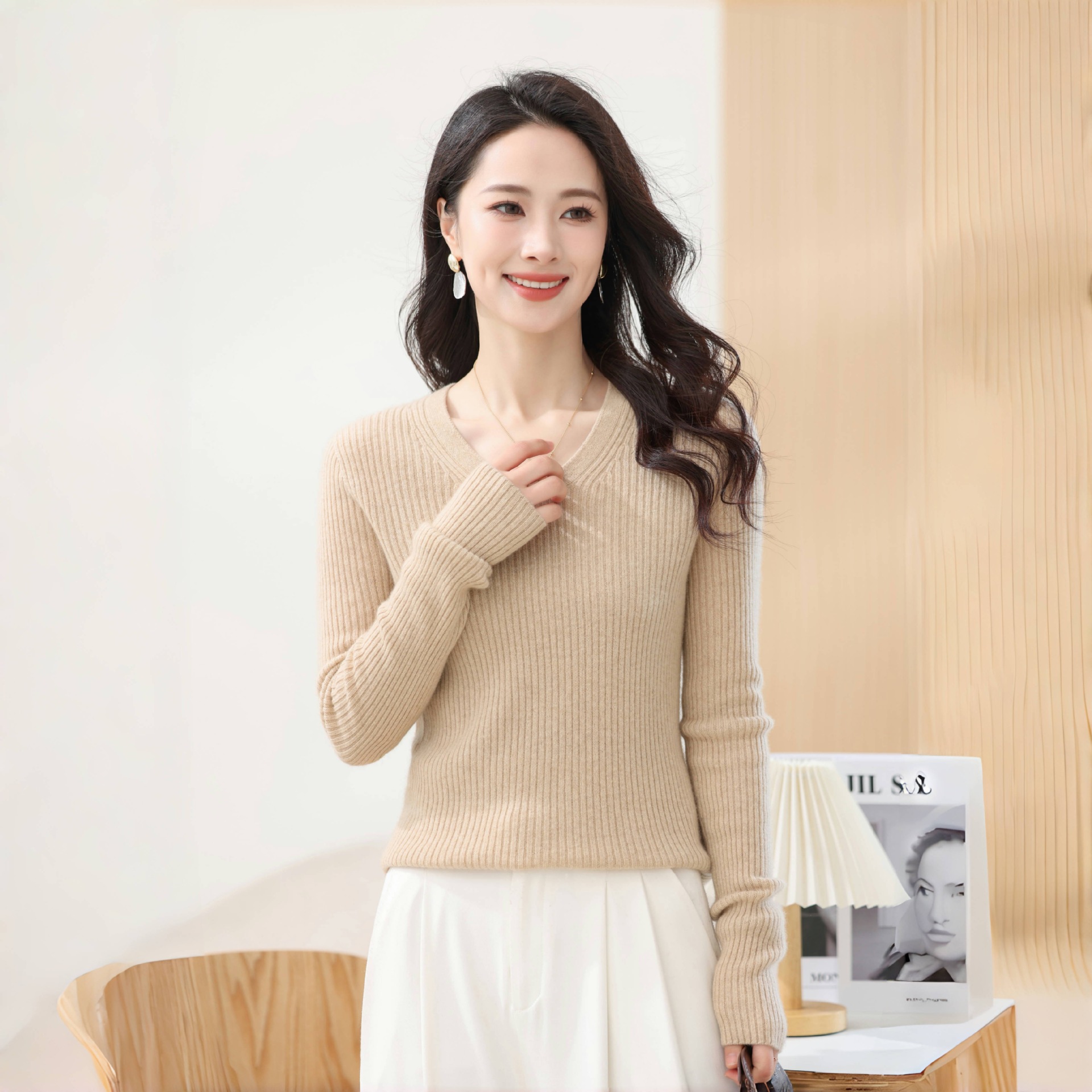 厂家批发2025新款V领内搭打底针织衫女宽松显瘦100%山羊绒长袖